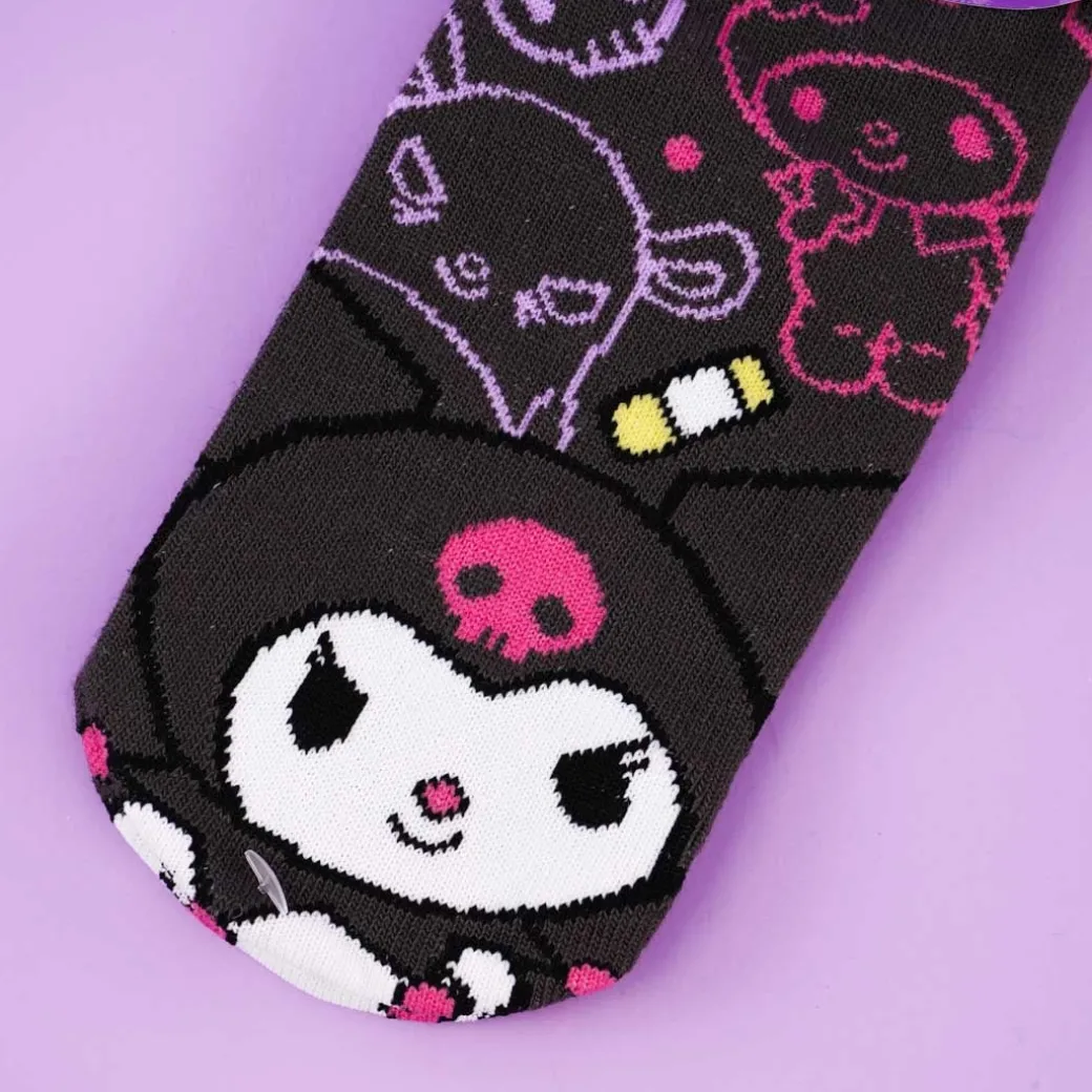 - A kawaii pair of socks illustrated with Kuromi and her friends