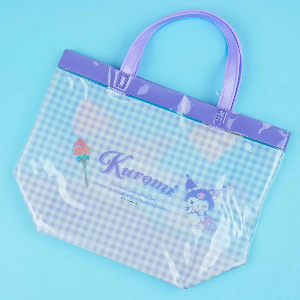 This super cute tote is decorated with a kawaii illustration of Kuromi holding a huge fork with a giant strawberry pierced on it! Use this tote bag to carry your swim googles, eyeglasses, and other beach essentials.
