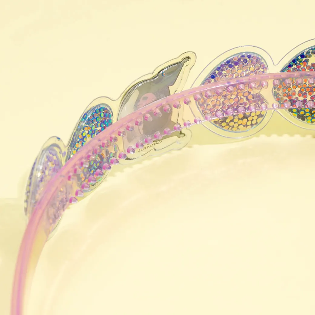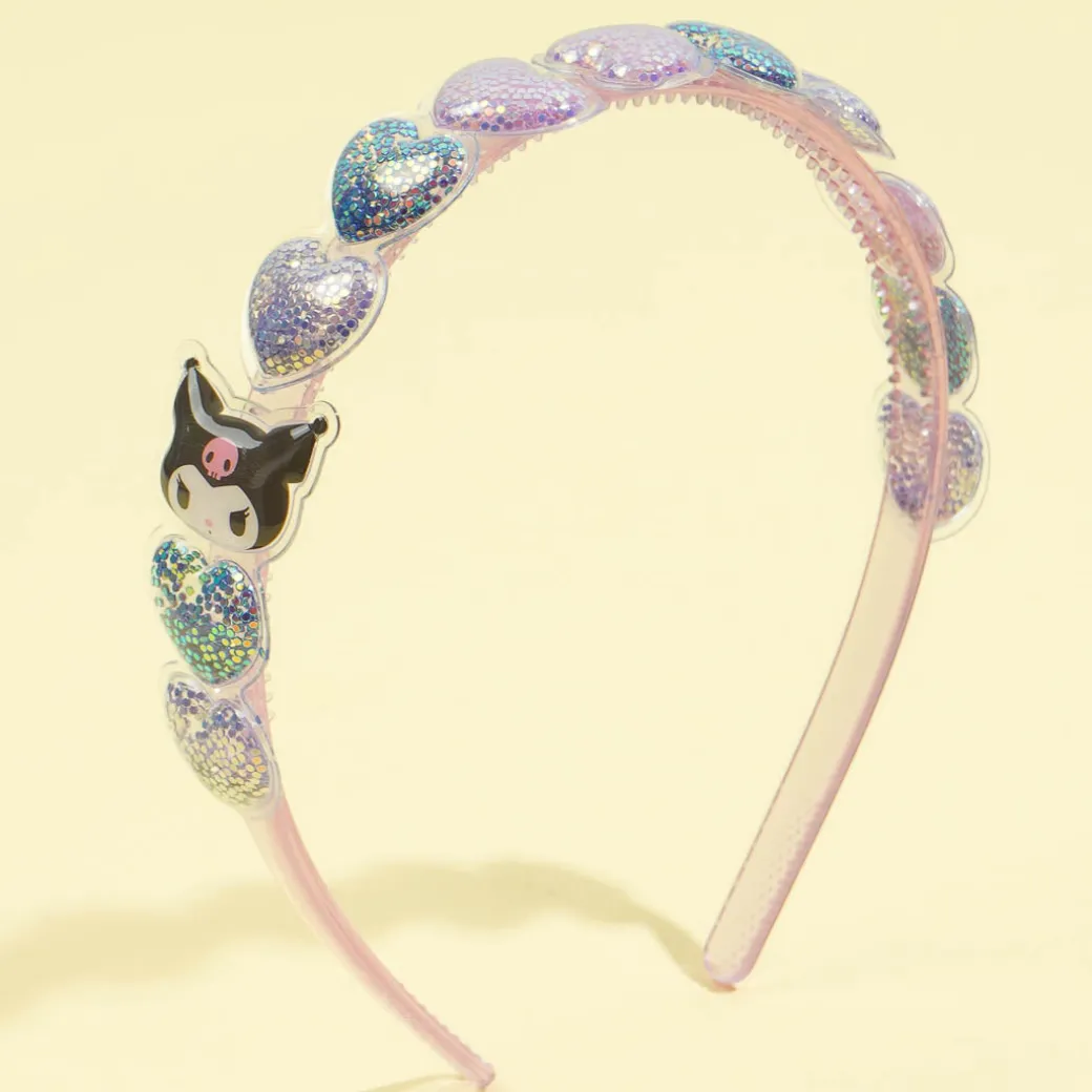 This kawaii plastic headband is decorated with glittery hearts and Kuromi’s smiling face. Use it to complete your kawaii look of the day with a cute hairdo!