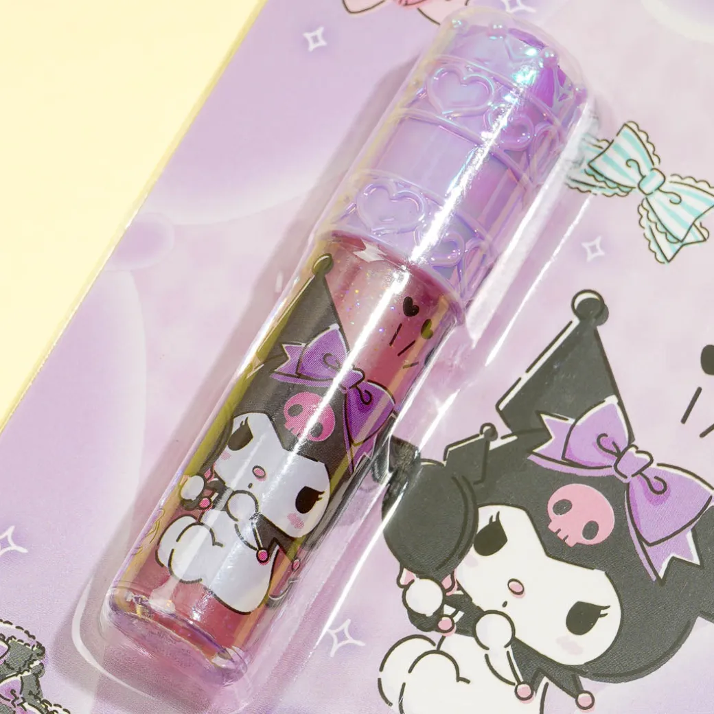 Pucker up and put on this super cute glittery lip gloss! Its tube features a print of Kuromi checking out her makeup in the mirror.