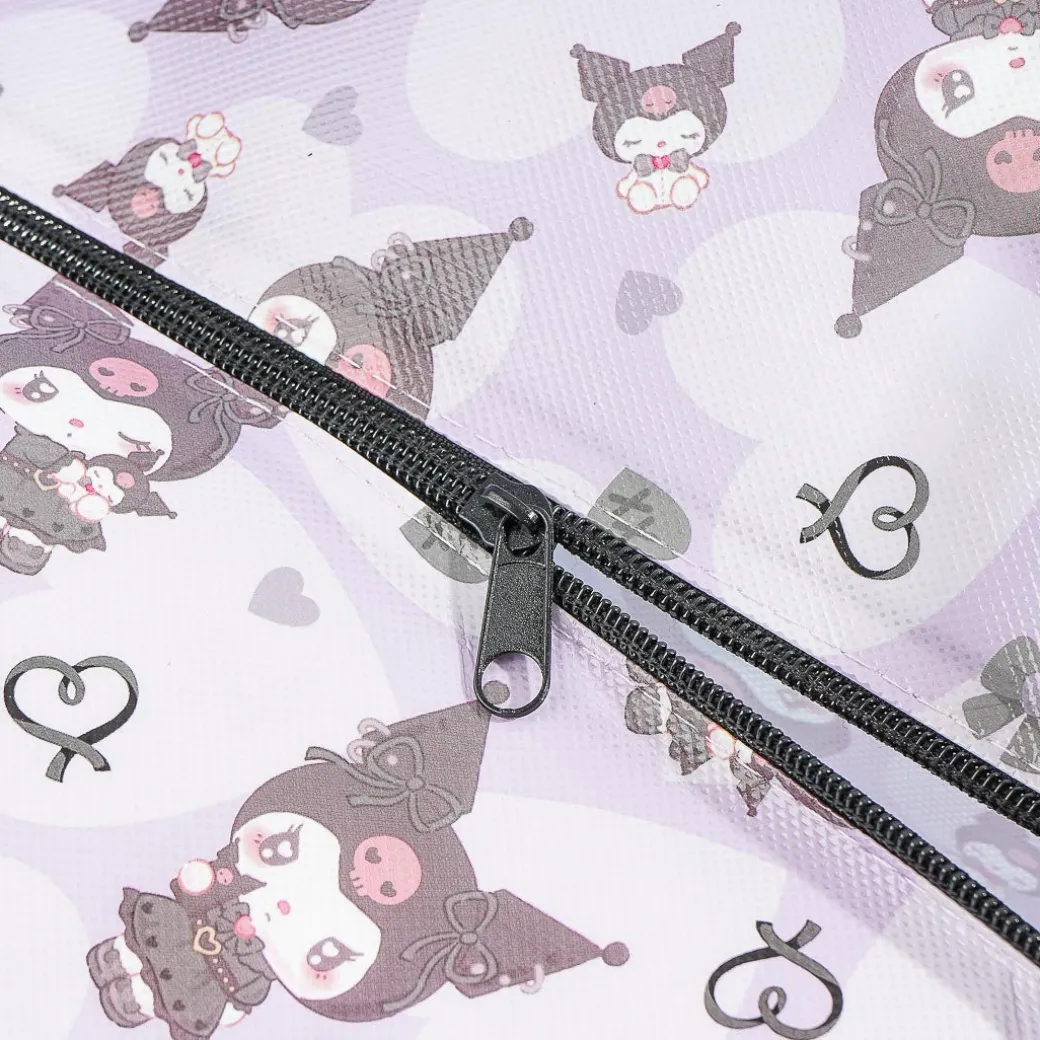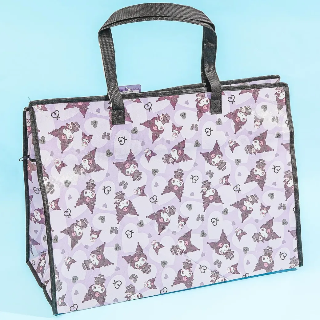 This kawaii bag is decorated with prints of Kuromi dressed as a Gothic Lolita doll! It features a zipper closure and has a large capacity so you can use it for traveling, picnics, or shopping. This bag is not machine-washable, but you can easily wipe it clean!