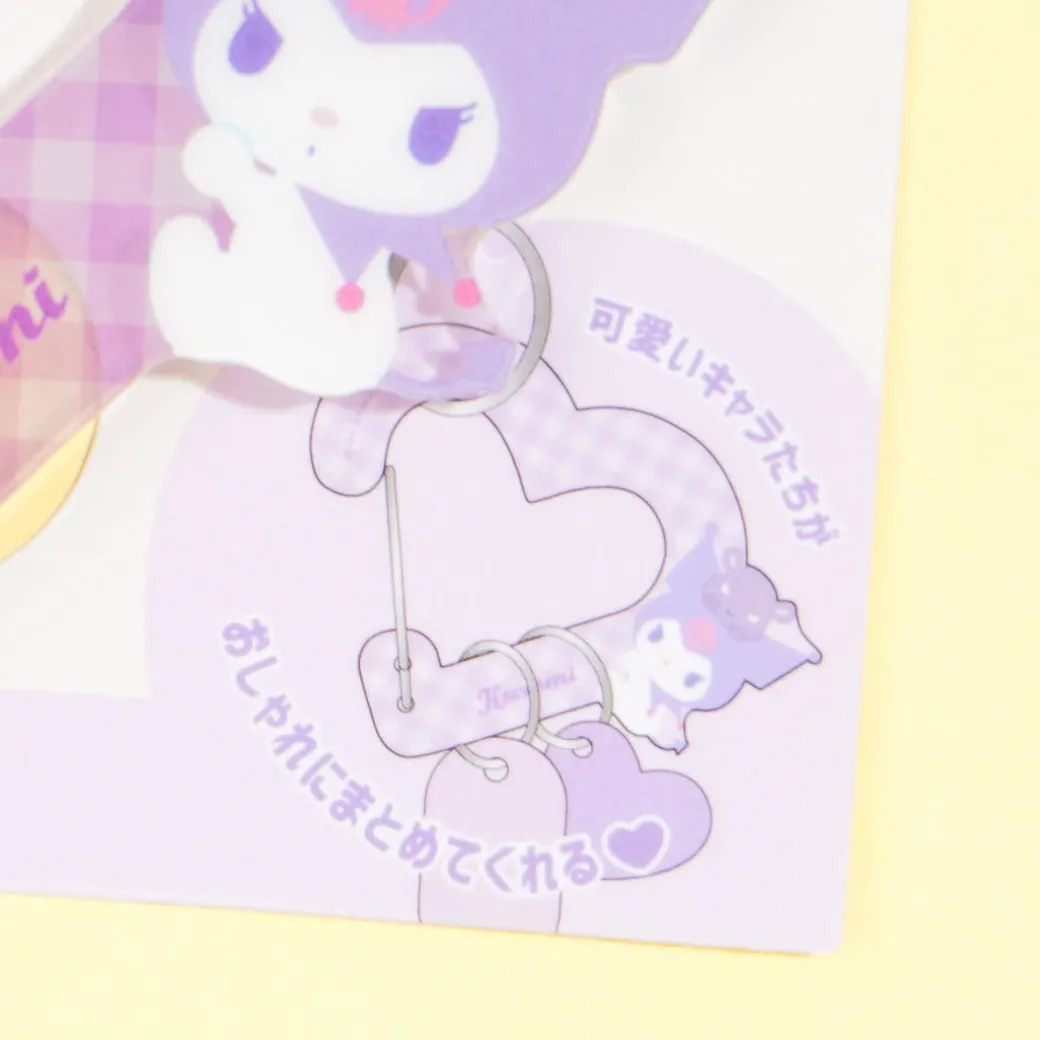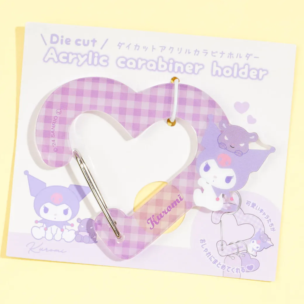 Use this heart-shaped carabiner to attach charms to your bag! It features a print of Kuromi hanging out with her friend Baku.