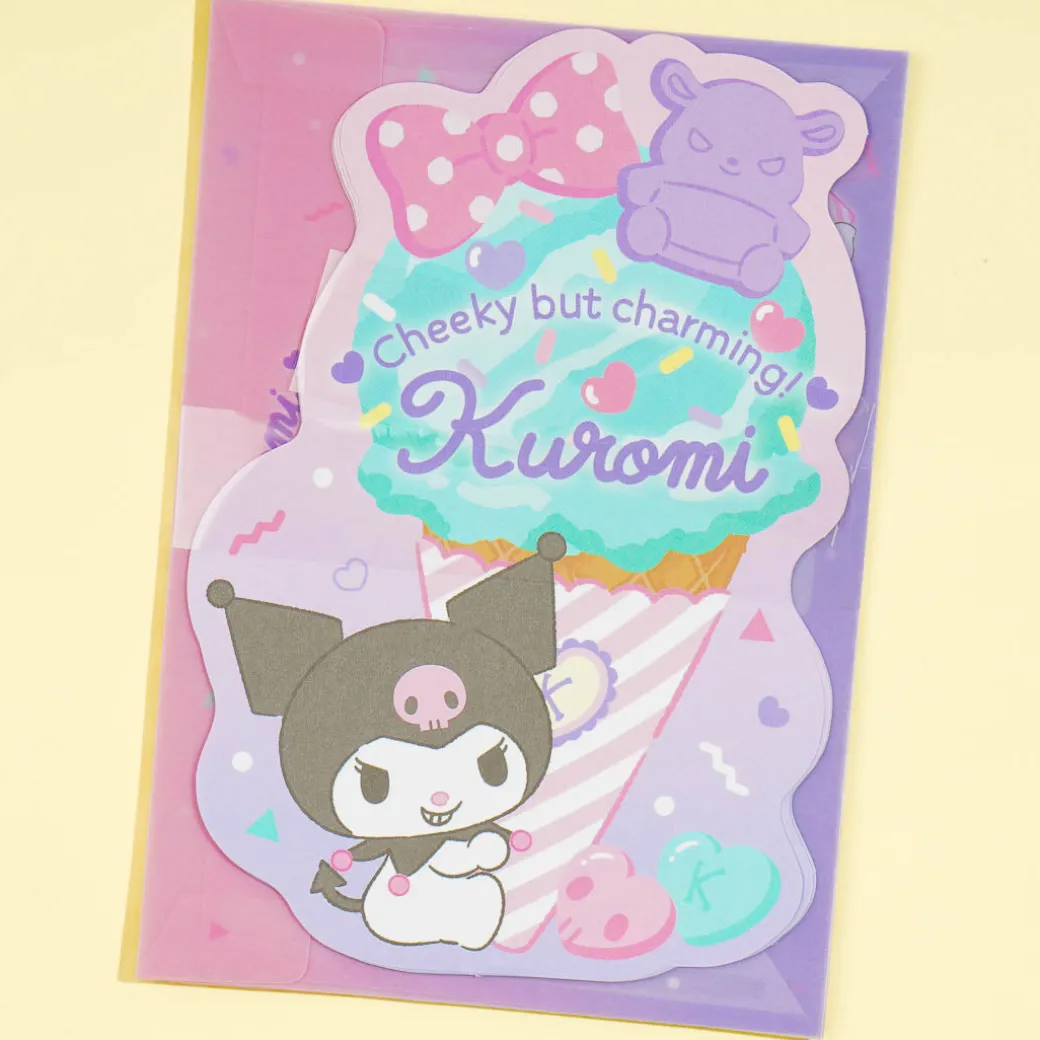 This cute letter set features Kuromi hanging on to a giant cone of ice cream. Use it to send sweet messages to your besties! It comes complete with letter paper, seals, envelopes, inner paper, and address stickers.