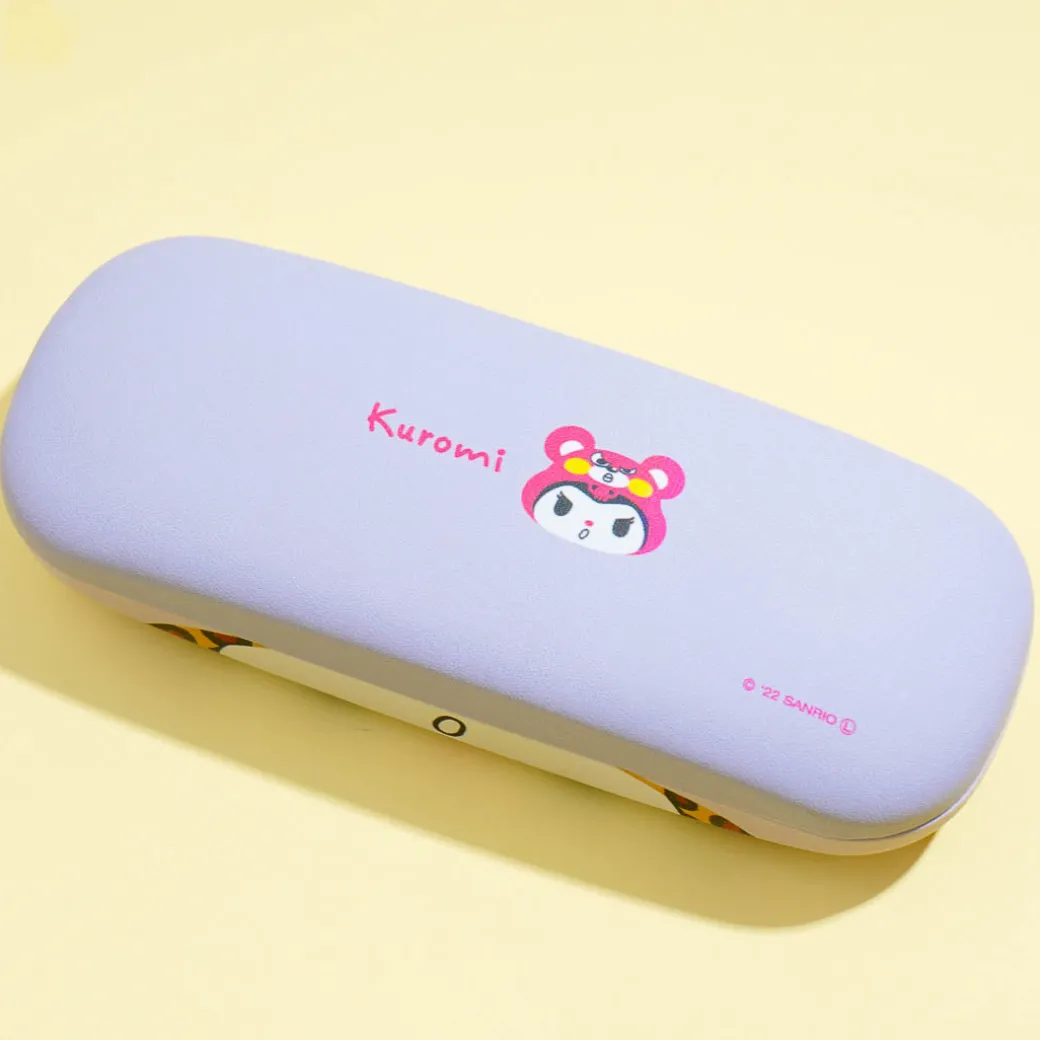 Keep your spectacles safe inside this kawaii hard case! It showcases a cute illustration of Kuromi wearing a leopard headgear.
