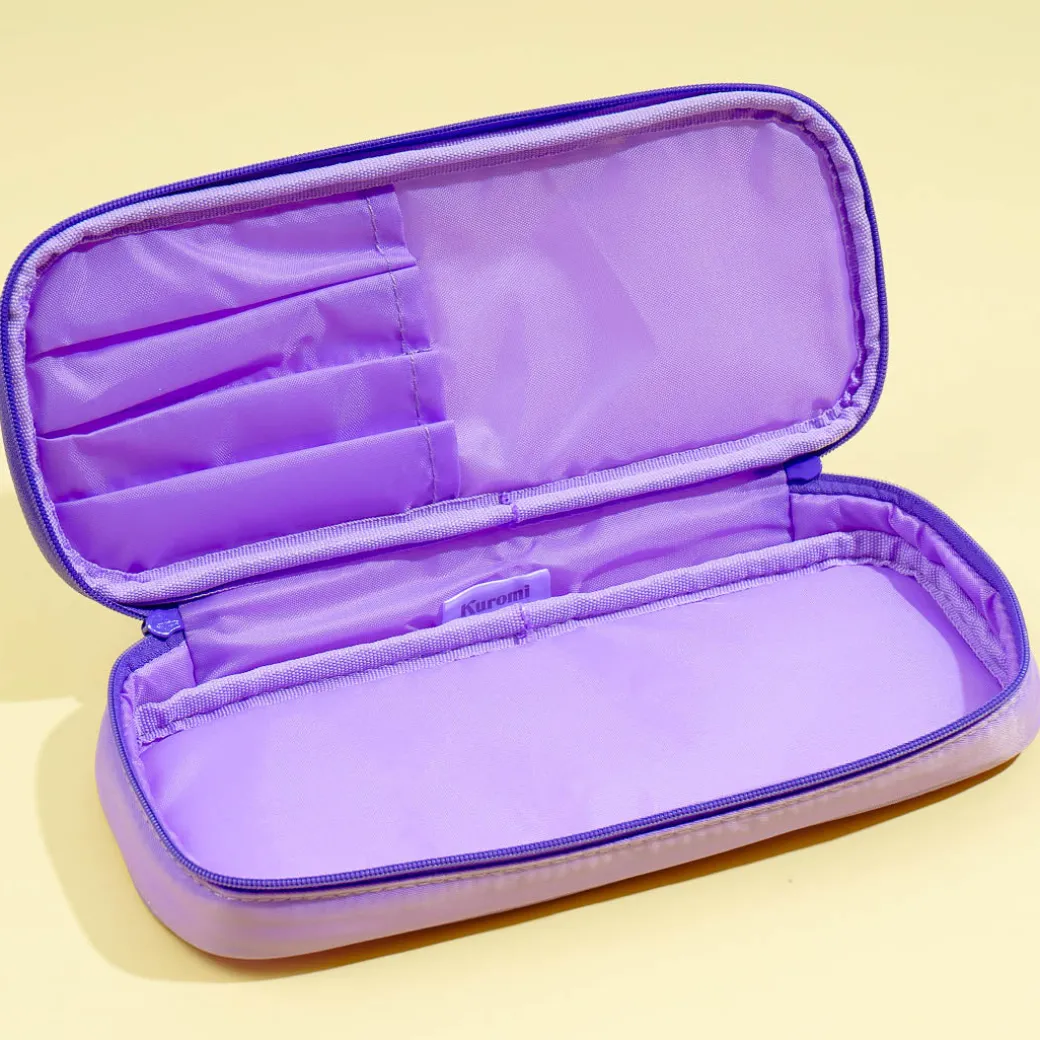 Use this super kawaii pencil case to bring your pens and erasers. It features Kuromi surrounded by leopard prints. This lightweight pencil case has a slim design and it has multiple pencil slots for you to use!