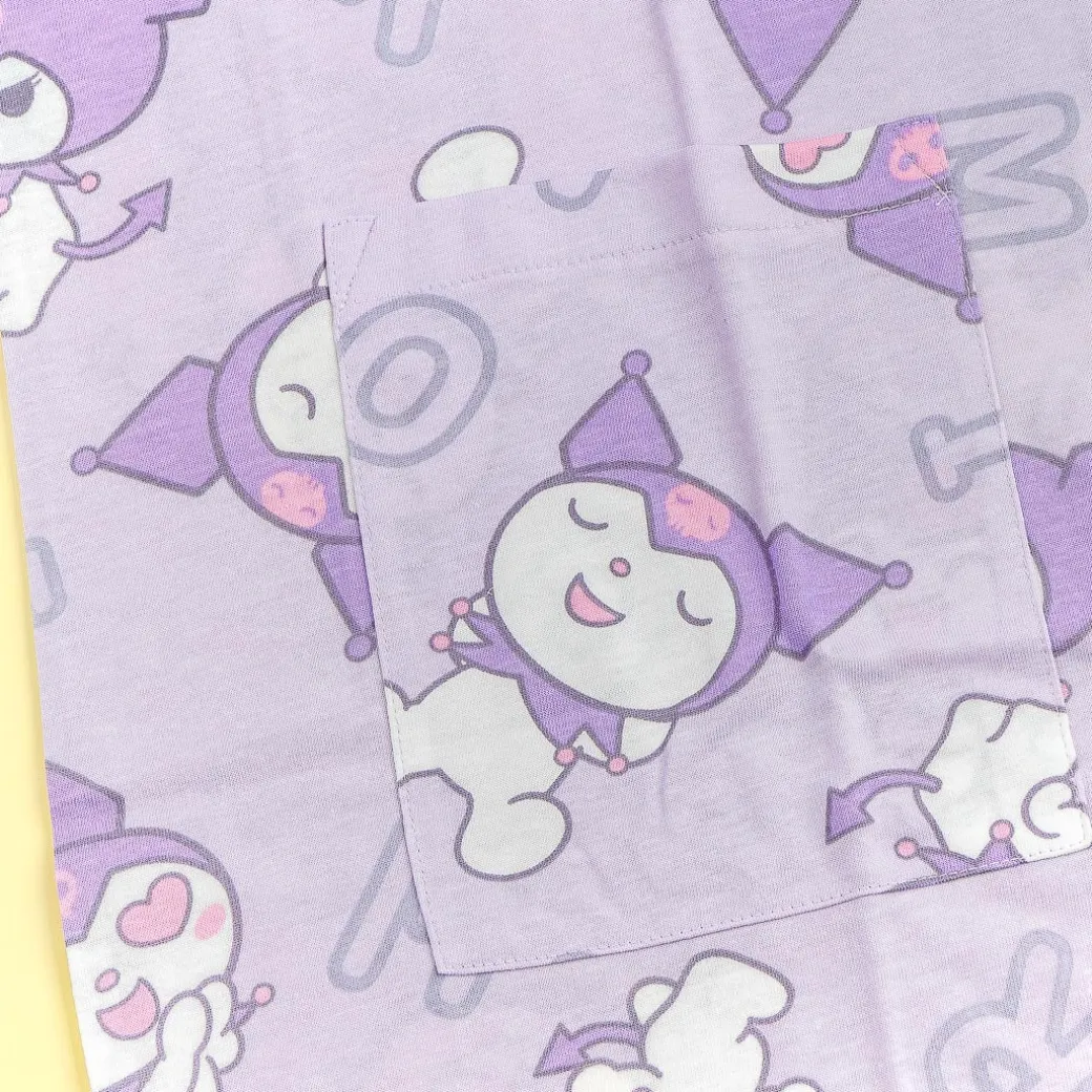 This kawaii shirt is covered with prints of Kuromi and the letters of her name! It’s an oversized T-shirt that you can wear as a mini dress. This shirt also has a front pocket near the waist area.