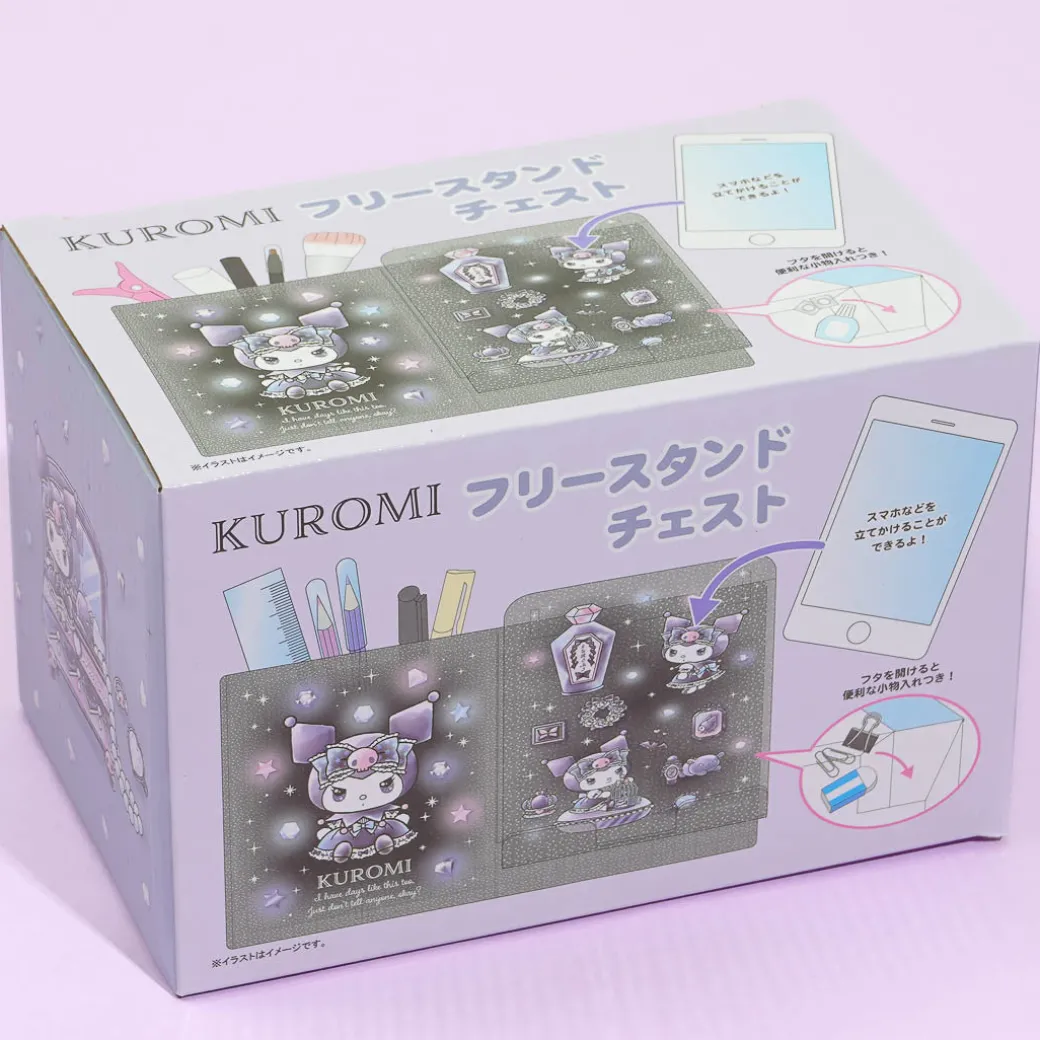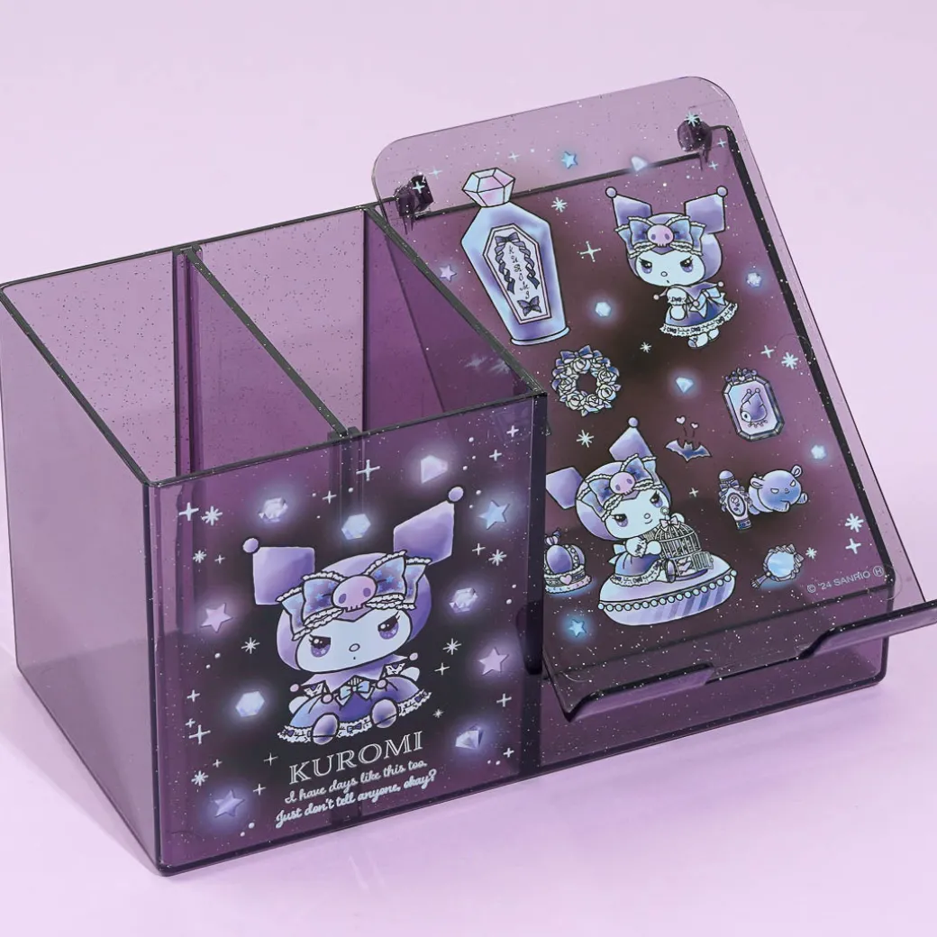Set this super kawaii stand on your favorite part of your desk! This stand features prints of Kuromi dressed up as a cute little Lolita. It has a slanted display where you can set your smartphone on. You can put makeup brushes in its different compartments.