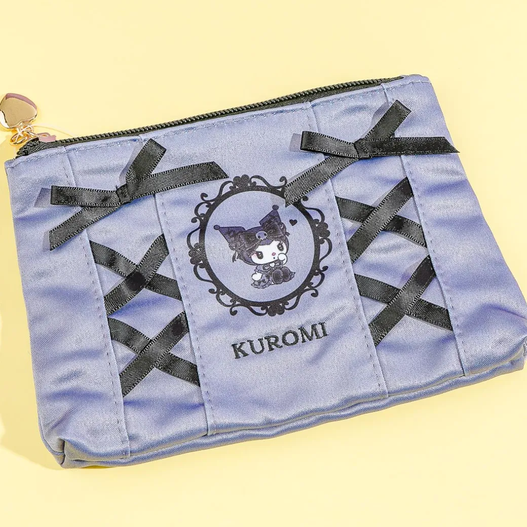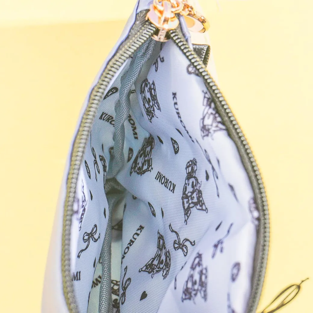 Keep your makeup inside this super cute zippered pouch. It features prints of Kuromi dressed up as a Gothic lolita. Not only that, but it also has black ribbon accents!