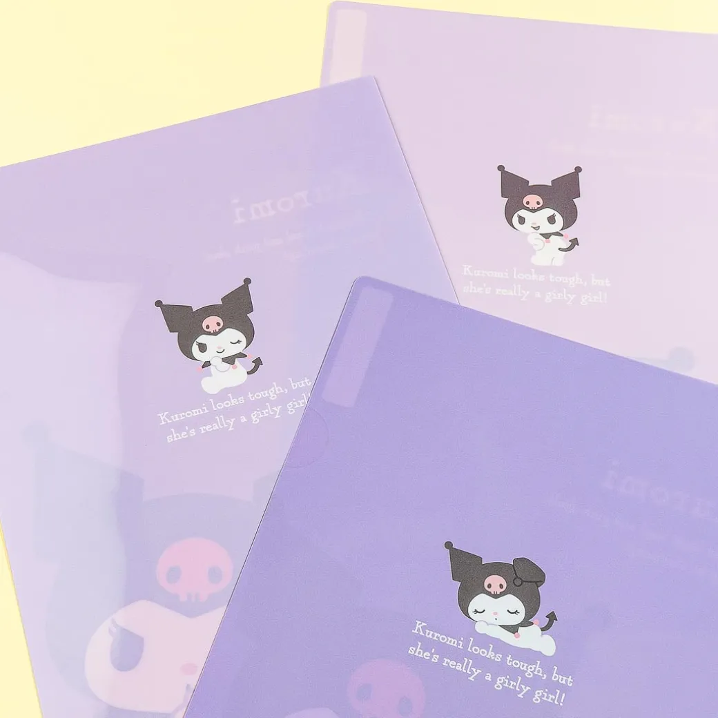 Use this kawaii set of clear file folders to sort out your documents for work or for school. They feature illustrations of Kuromi doing different things. Each A4 folder has an index space where you can conveniently write down titles!