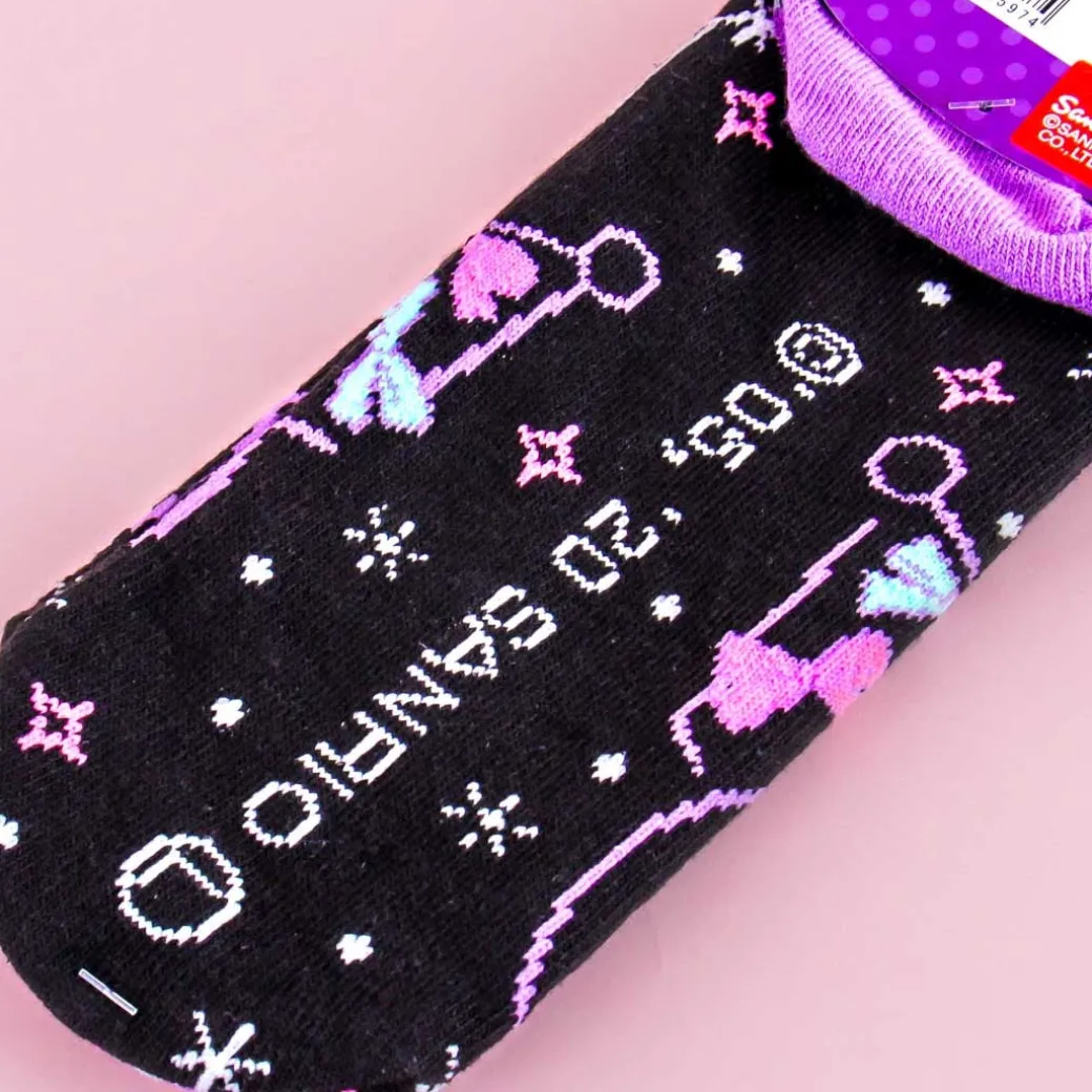 - A pair of socks featuring Kuromi with stars twinkling