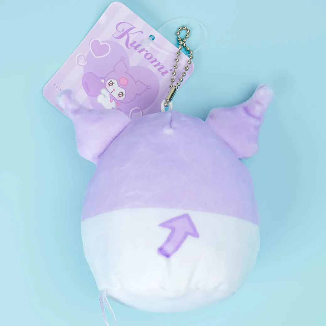 This round and squishy Kuromi plushie looks super cute with wistful eyes and pouty lips. It’s medium-sized and comes with a removable ball chain so you can attach it to your bag and carry it around.
