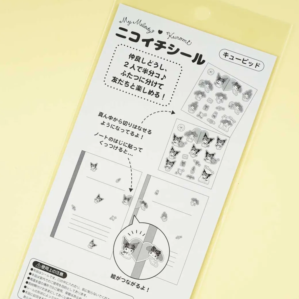 - A super cute sheet of stickers showcasing Kuromi and My Melody as cupid
