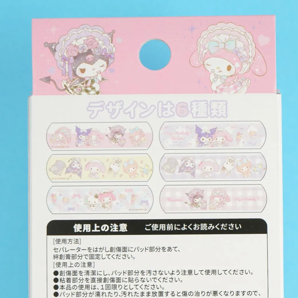 Use these kawaii bandages to cover up your wounds! This pack features cute designs of My Melody and Kuromi wearing lolita dresses.