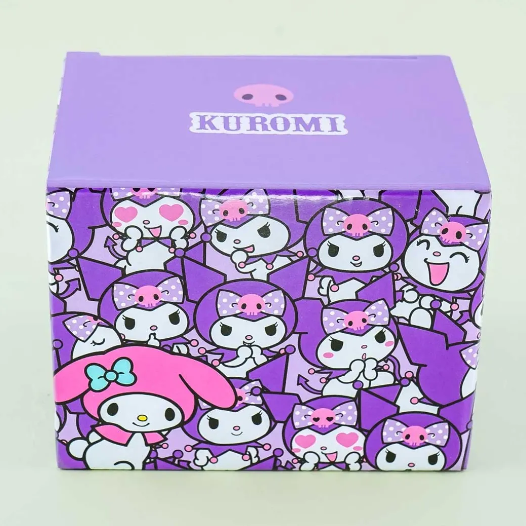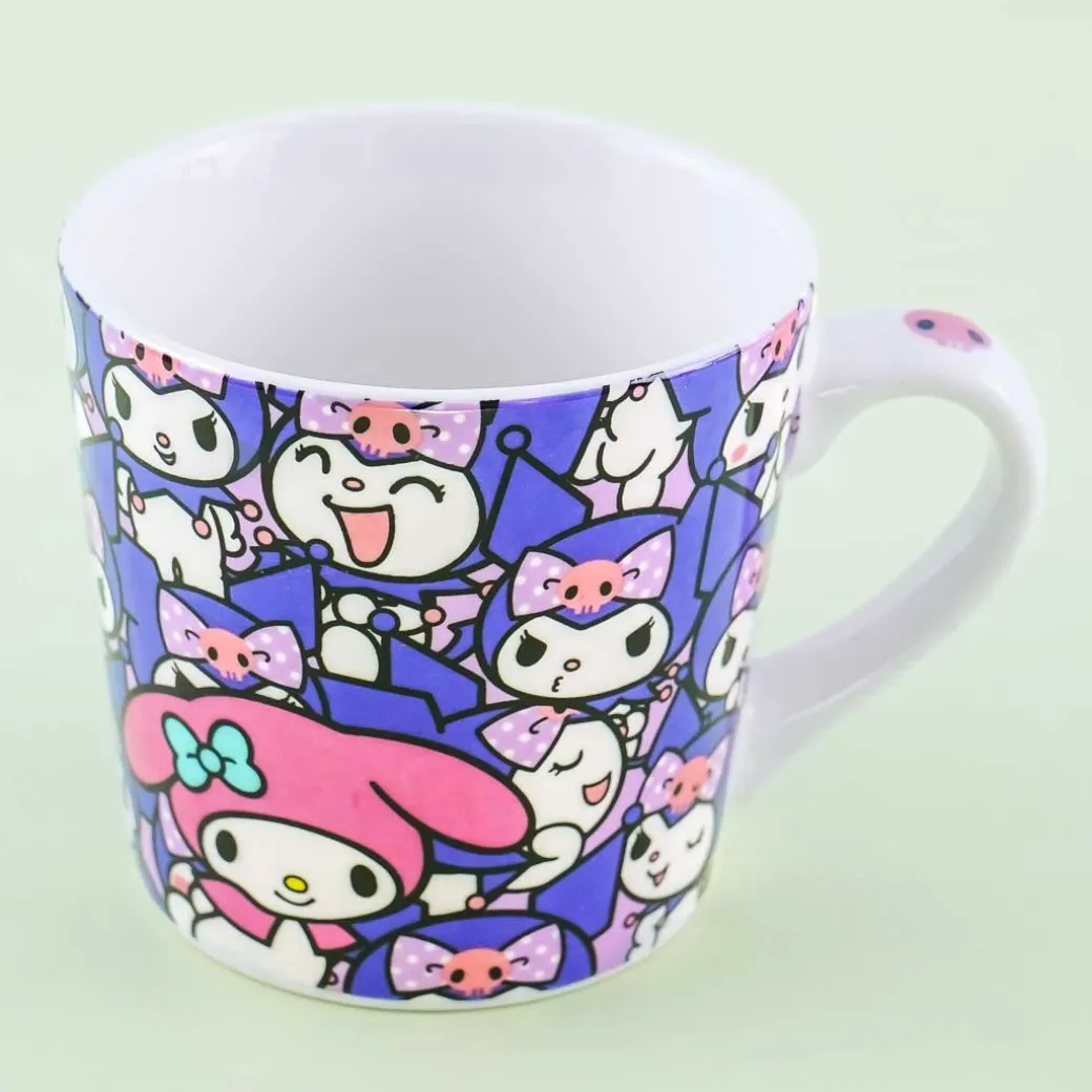 - A super cute mug covered in prints of Kuromi with a peaking My Melody