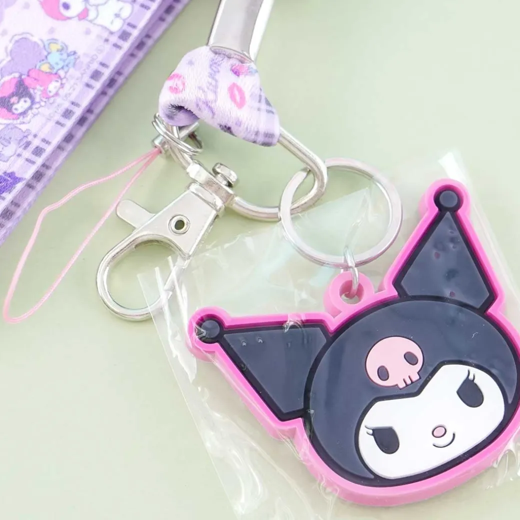 - A super cute plaid lanyard featuring lots of Kuromi and My Melody illustrations