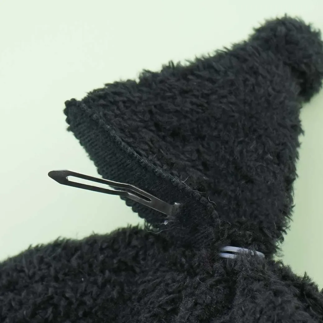 - Comes with a zipper closure and two removable ear-shaped hair clips