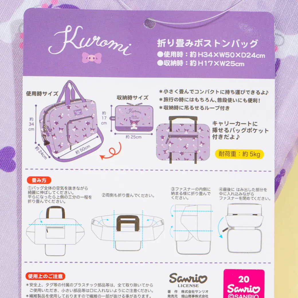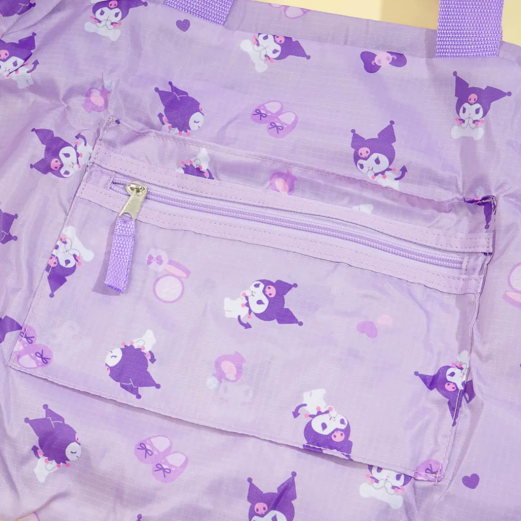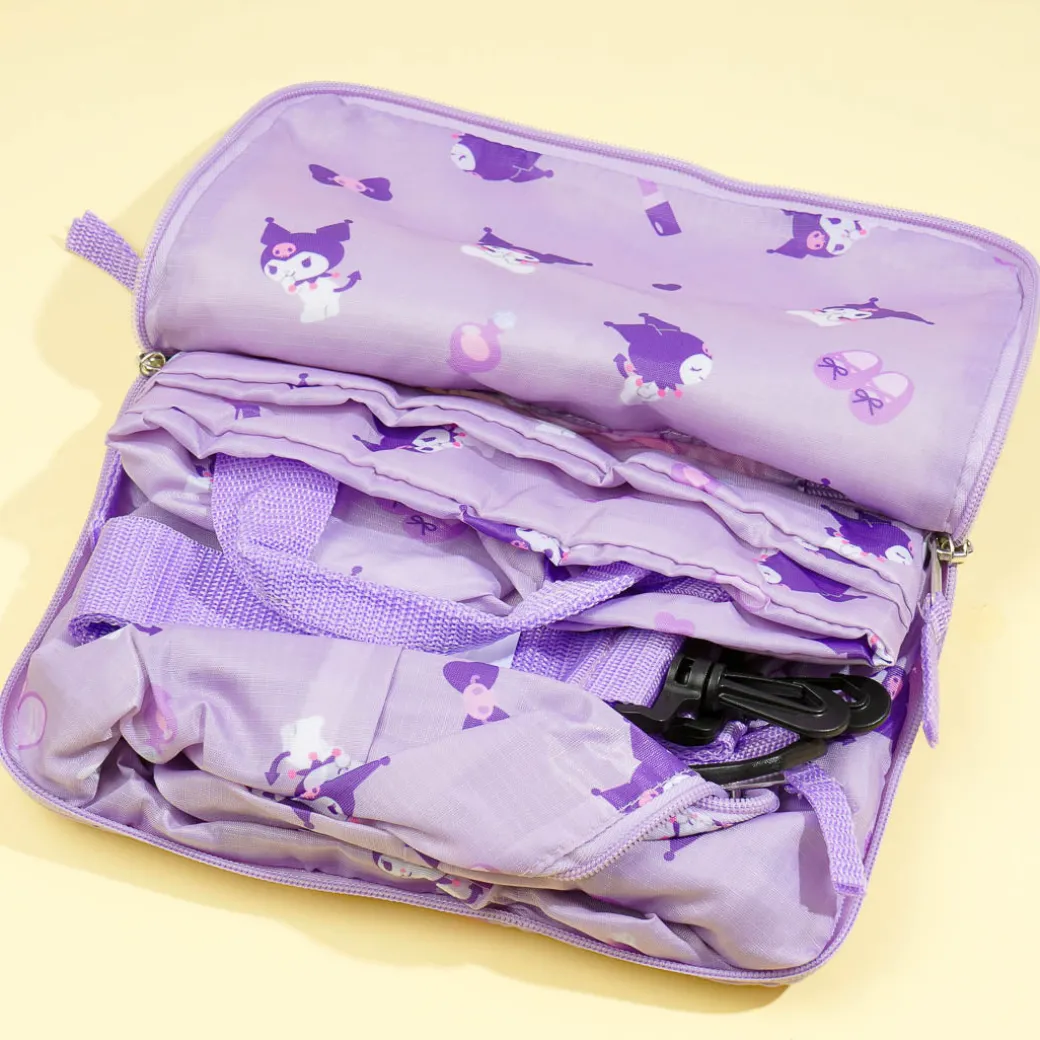 This kawaii large-capacity nylon duffel bag is covered in prints of Kuromi! It’s perfect for bringing along your things for a 2-day-1-night trip. You can fold this bag into its storage compartment when you’re not using it. Carry around this bag like a handheld or attach its strap to bring it like a shoulder bag when you want to!