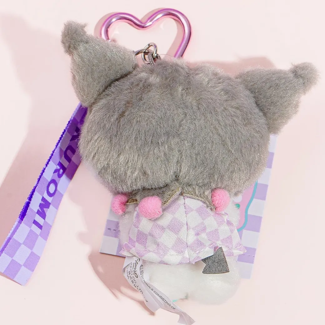 This super kawaii Kuromi plush charm is holding a purple flower and is wearing a checkered dress! It also comes with a heart-shaped metal carabiner and a checkered wrist with Kuromi’s name. Attach this to your bag for a dose of cuteness!