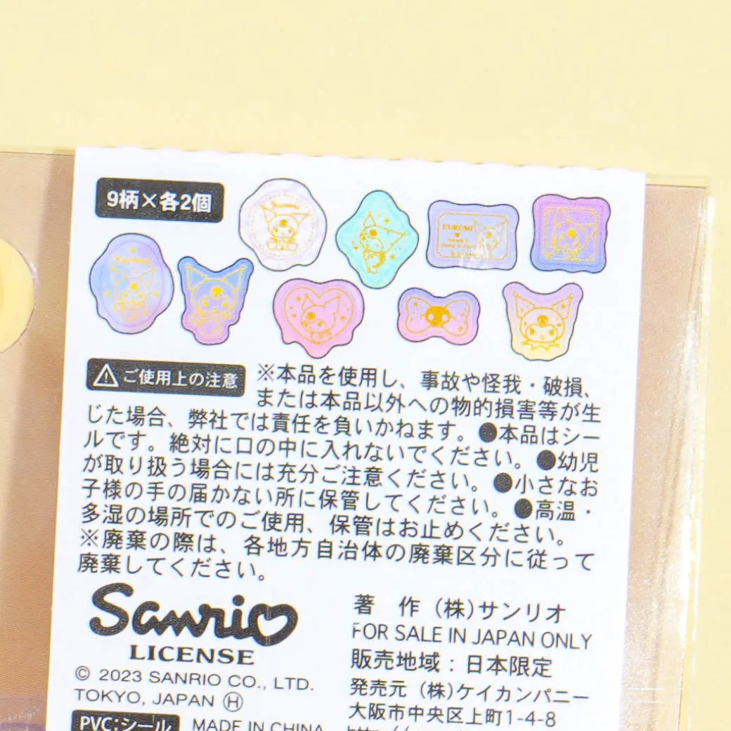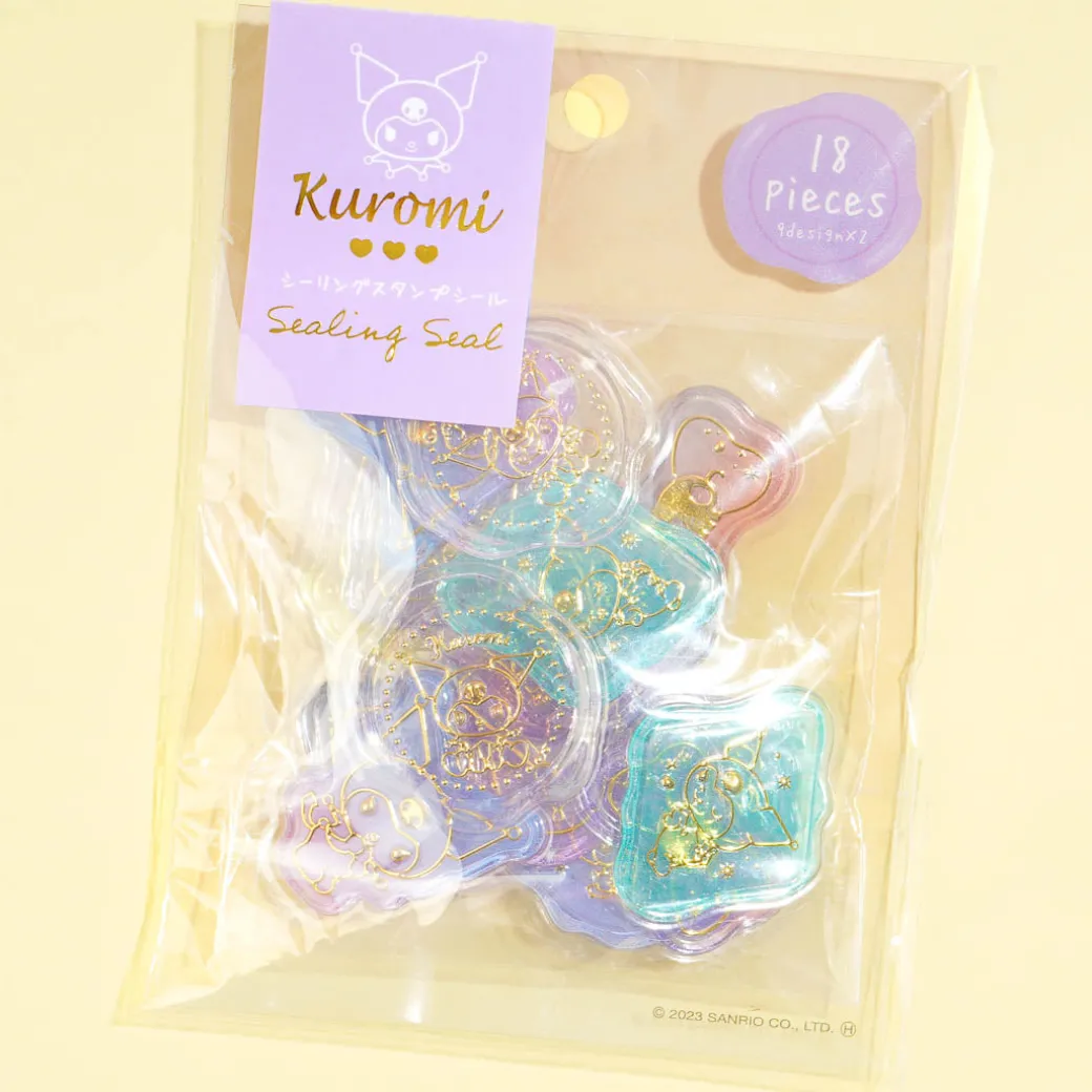 Use these super cute die-cut pastel stickers to seal your birthday invites! The pack features various gold illustrations of Kuromi. You can also use them to decorate your scrapbooks!