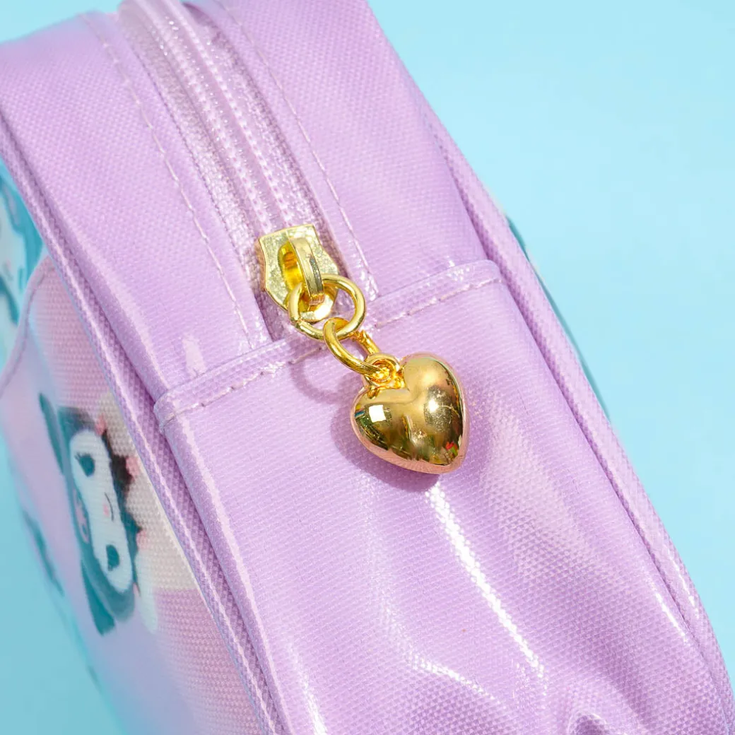 This kawaii pouch from the Sanrio Pitatto Friends series is covered in prints of a Kuromi plushie. Use it to organize your lip balm, blush-on, and other small makeup items! It has multiple inner pockets and an outer pocket for you to use. You can keep this pouch clean since it has a water and dirt-resistant laminated finish.