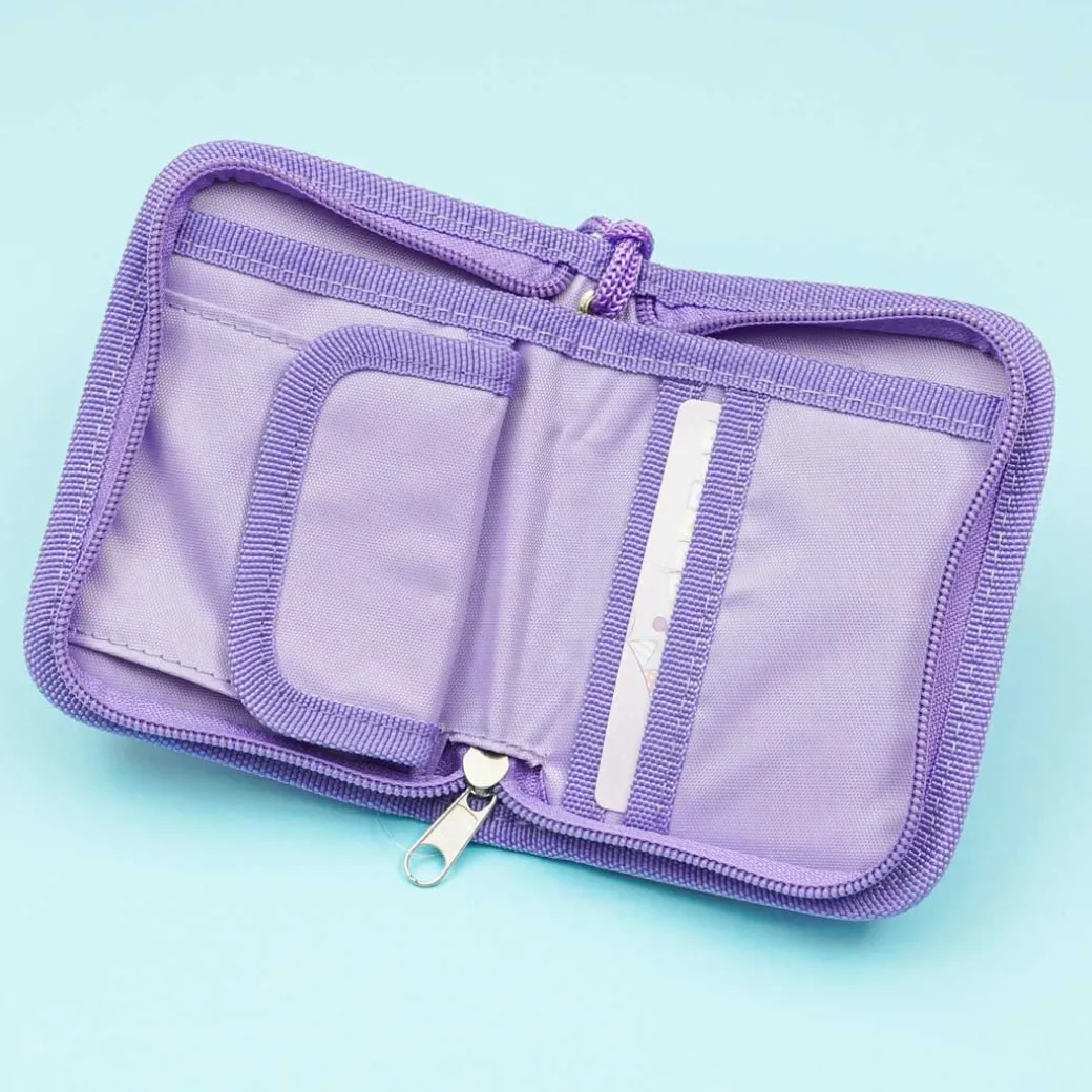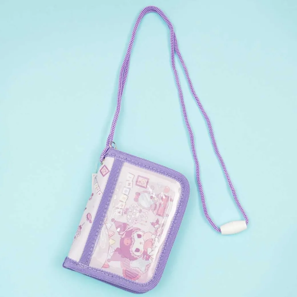 - A kawaii kid’s wallet illustrated with Kuromi relaxing in her room
