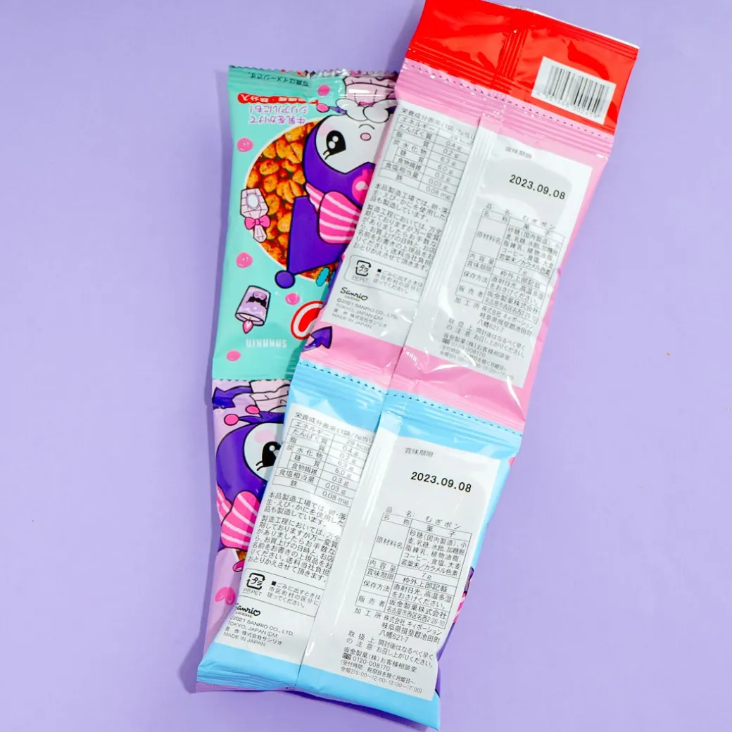 This softly popped wheat grain snack has a delicious blend of barley grass and coffee flavor. It comes in colorful packaging featuring illustrations of Kuromi. You can munch on this puffed grain snack or serve it as cereal with milk!