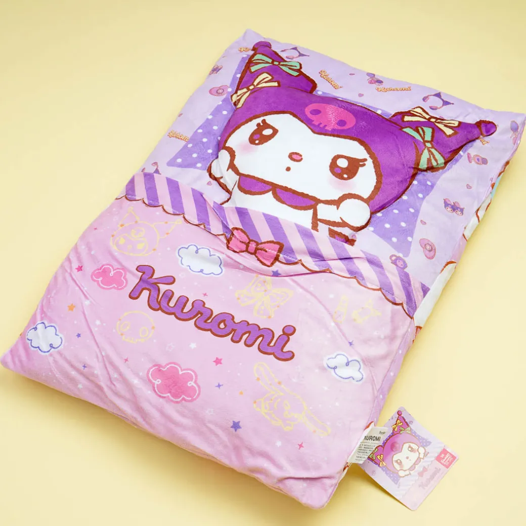 This cushion features a kawaii sleeping Kuromi! It comes from the Sanrio Pukkuri Good Night series. Use it to decorate your bed or your couch.