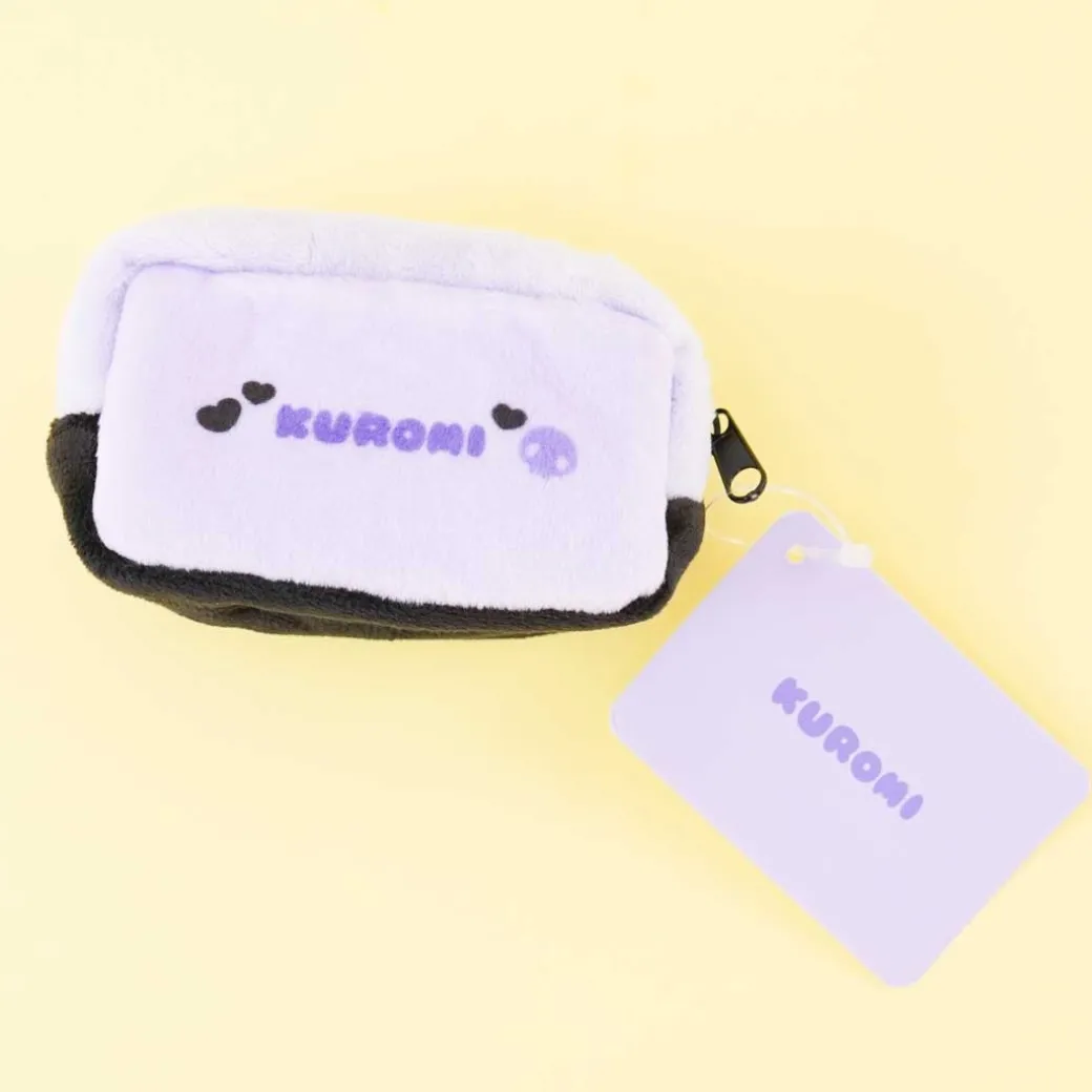 - A super cute fluffy zippered mini pouch illustrated with Kuromi and hearts