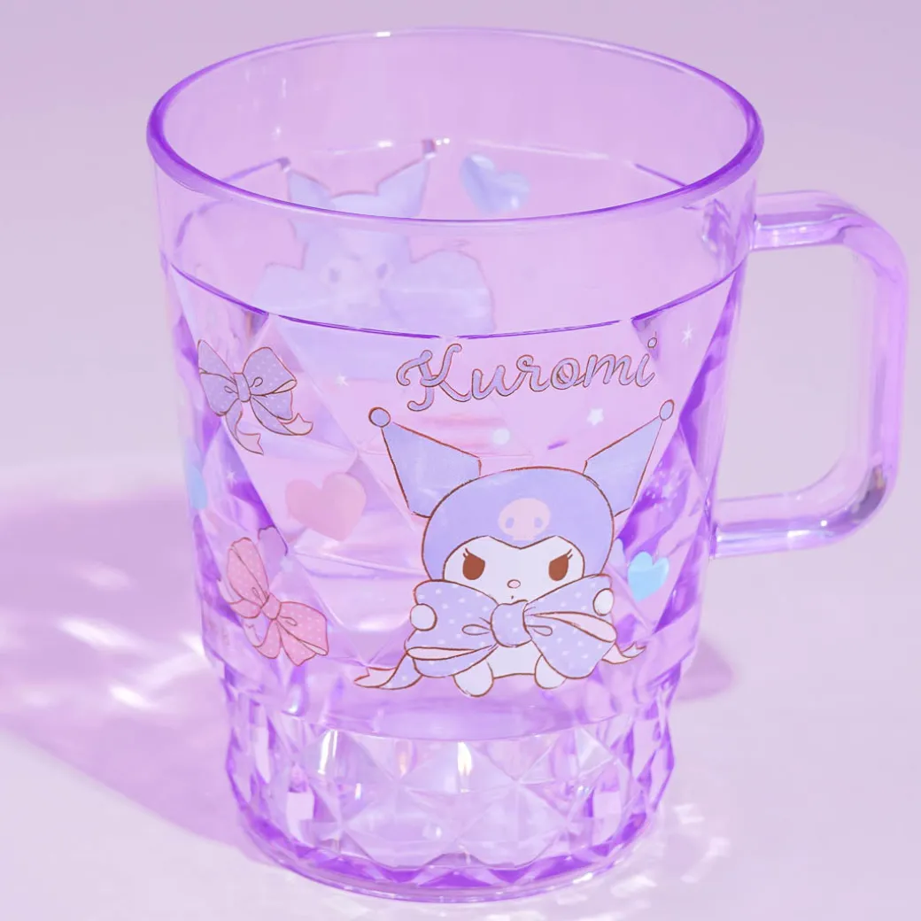 This kawaii mug showcases prints of Kuromi playing with ribbons! It has a diamond-cut design which makes it look sparkly! Use it to take a sip of your favorite drink.