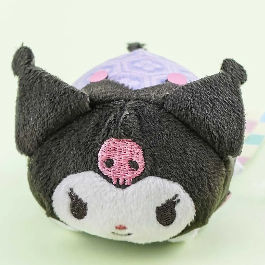 - A kawaii small Kuromi bean bag plushie with traditional Japanese patterns