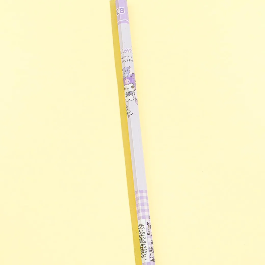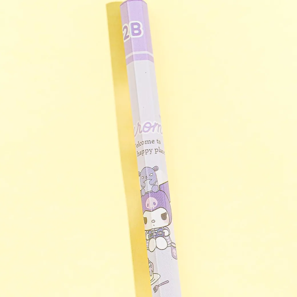 This kawaii pencil has a hexagonal body for an easier grip! It’s decorated with a super cute illustration of Kuromi busy playing video games and eating cake with Baku.