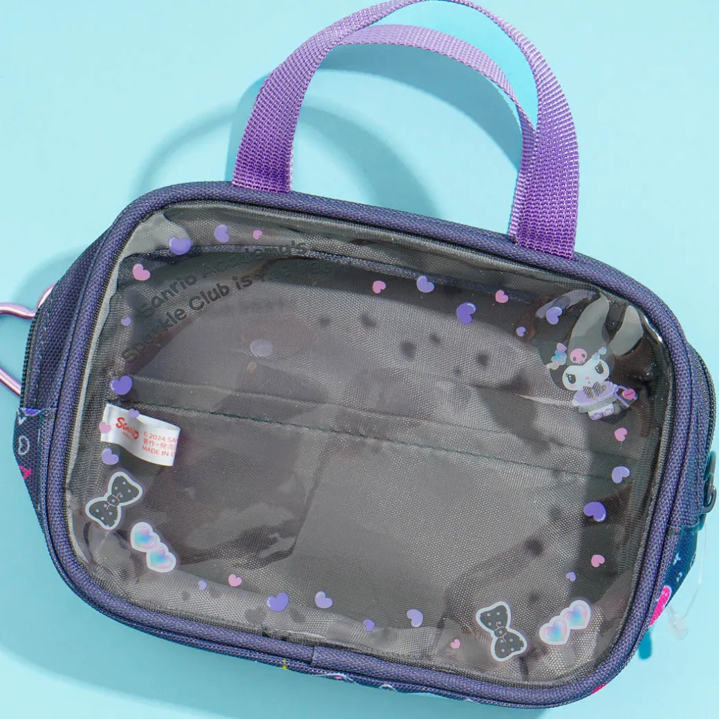 Carry your essentials kawaii-style using this super cute and compact handbag! It features prints of Kuromi from the Sanrio Academy series. This bag has a fluffy heart charm and a clear window at the back so you can easily see what’s inside.