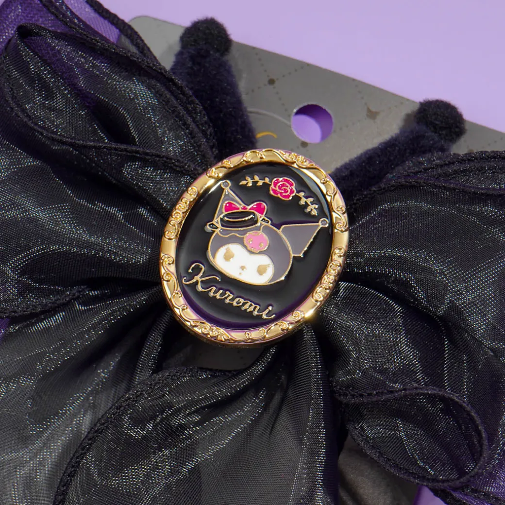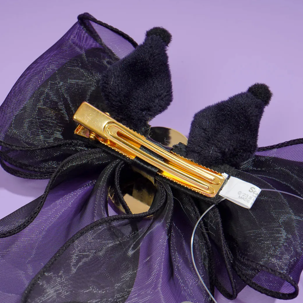 Complete your kawaii look by decorating your hair with this cute clip! It has a sheer ribbon decor with a center emblem showcasing Kuromi. This clip also has 3D Kuromi ears.