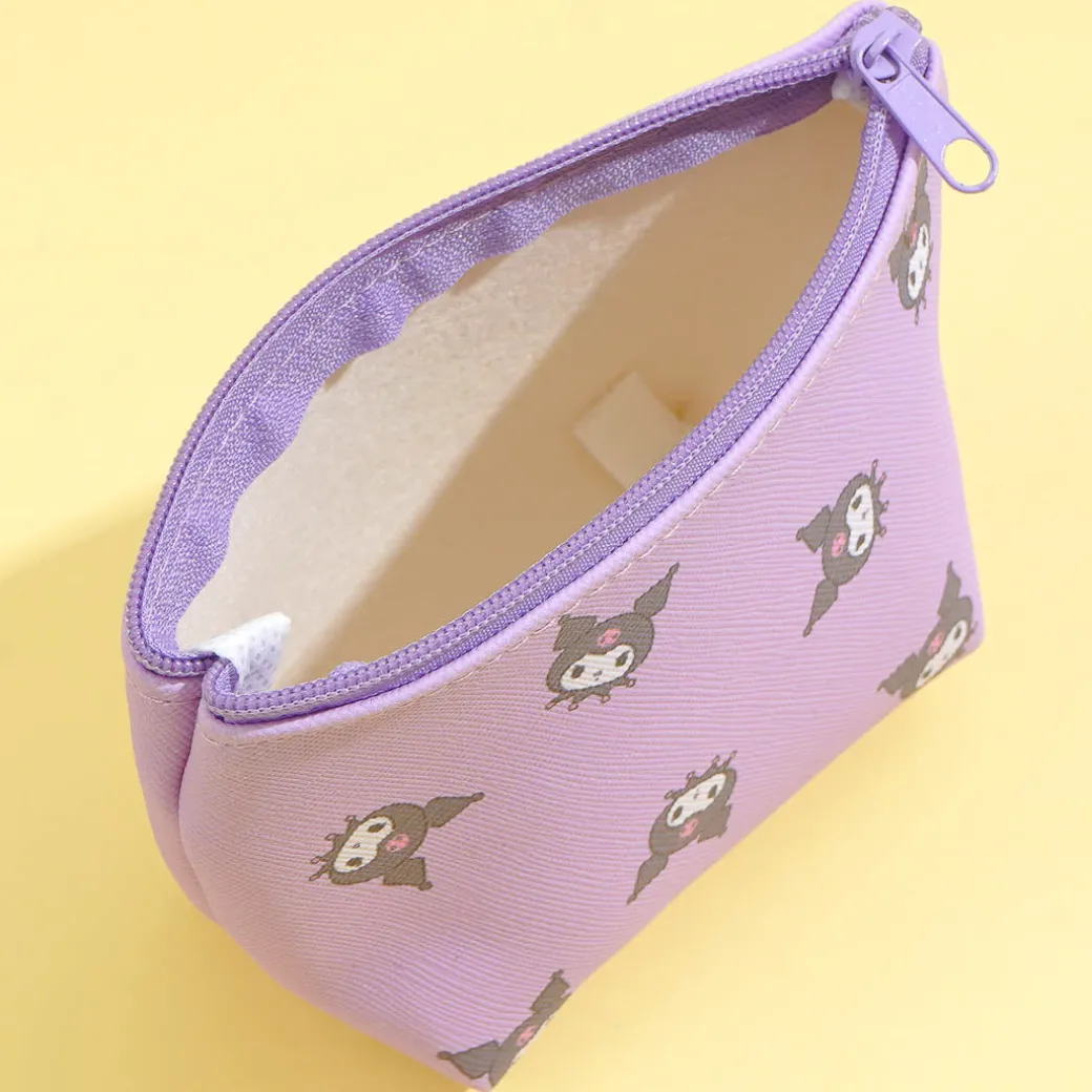 Keep your loose change, charms, and other knick-knacks inside this cute zippered pouch. Not only does it feature prints of Kuromi’s cheeky little face, but it also showcases Kuromi transformed into Japanese hiragana characters that spell out her name!