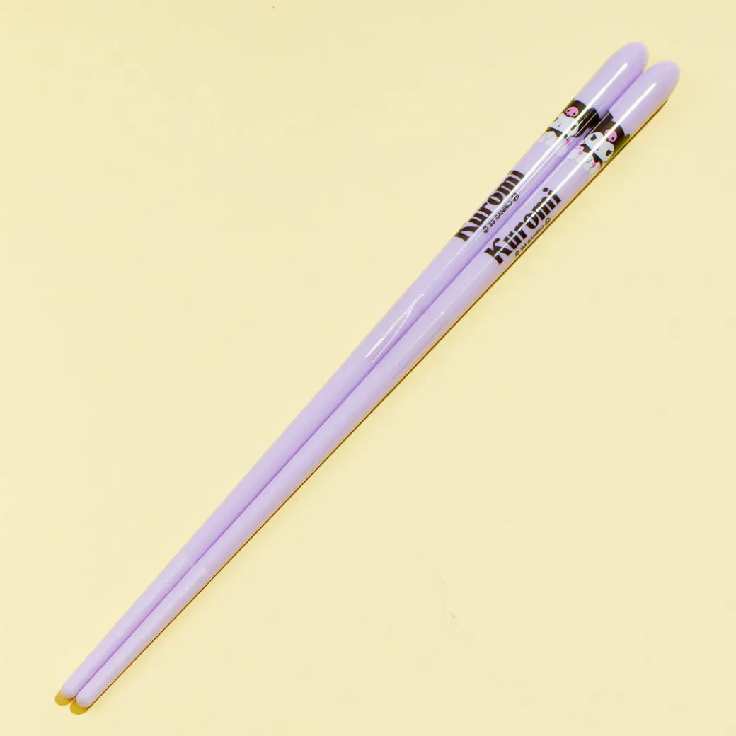 These chopsticks showcase prints of Kuromi sitting down. Use these cute chopsticks to eat dim sum! You don’t have to worry about food slipping – these chopsticks feature non-slip coating.