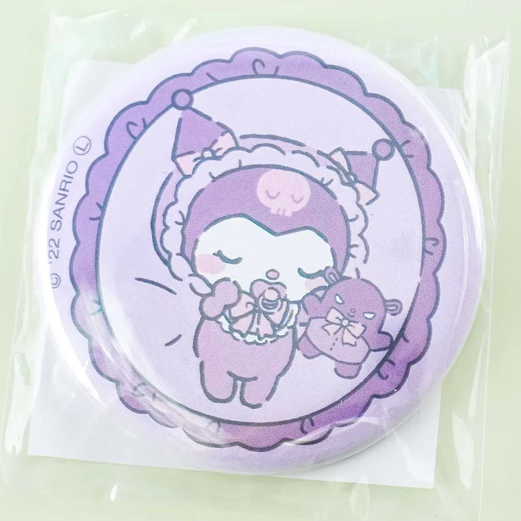 - A cute aluminum badge illustrated with a sleeping baby Kuromi