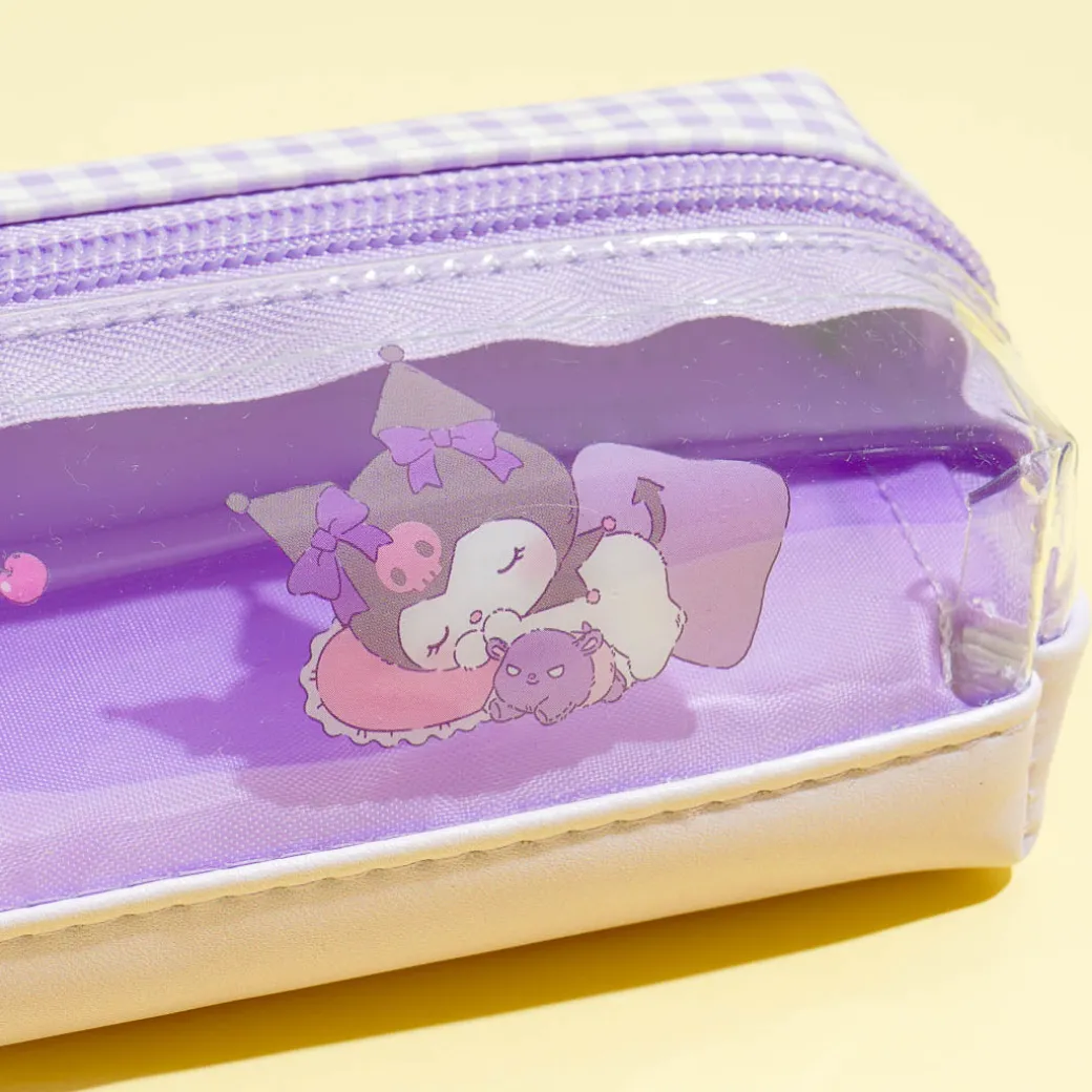Bring along your pens using this super kawaii twin zipper pencil case. It features prints of Kuromi taking a nice nap! This pencil case has two compartments that you can use to organize things.