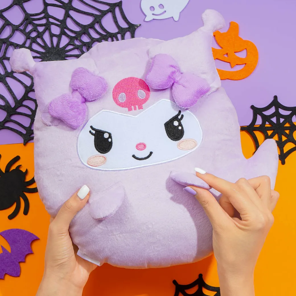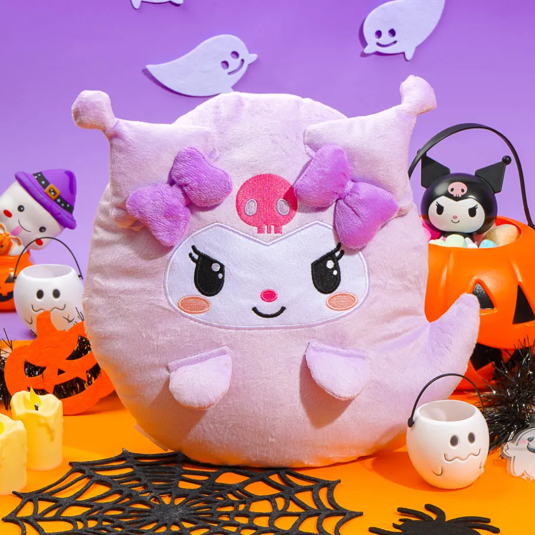 Kuromi’s birthday is Halloween, and she’s ready to celebrate the night looking spooky! This super cute, medium-sized plushie is shaped like a ghost with purple ribbons on its head.