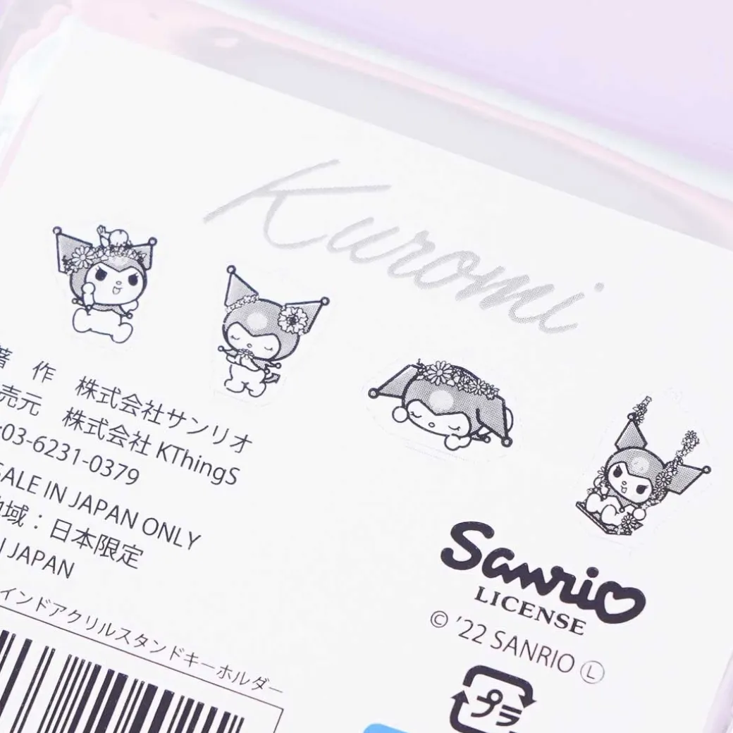 - A kawaii die-cut Kuromi with flowers stand that can be used as a bag charm