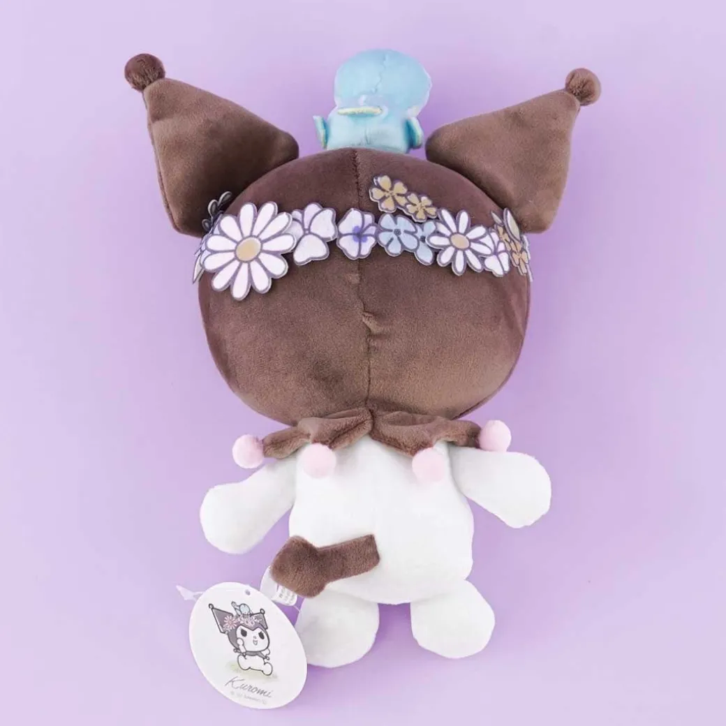 - A cute medium-sized Kuromi plushie dressed up for the spring season