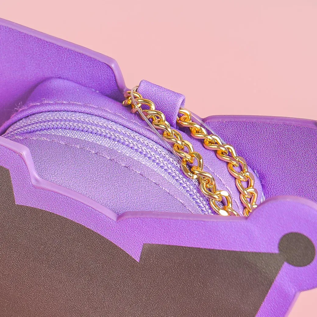 Use this kawaii pouch as a study buddy and coin purse! It features a cute die-cut illustration of Kuromi with Baku. The pouch stands on its own so you can prop it up on your desk.