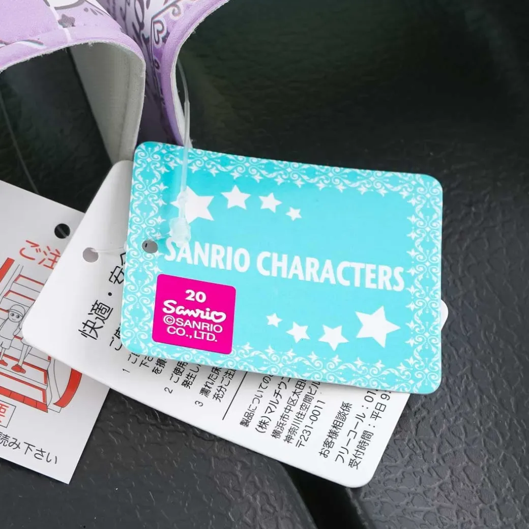 - A kawaii pair of medium black slippers featuring Kuromi, mini stars, and pink skulls