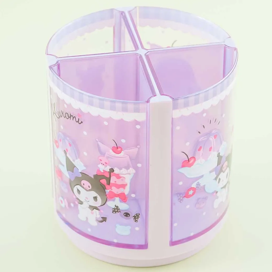 - A kawaii rotating pen stand featuring prints of Kuromi with different kinds of sweet treats