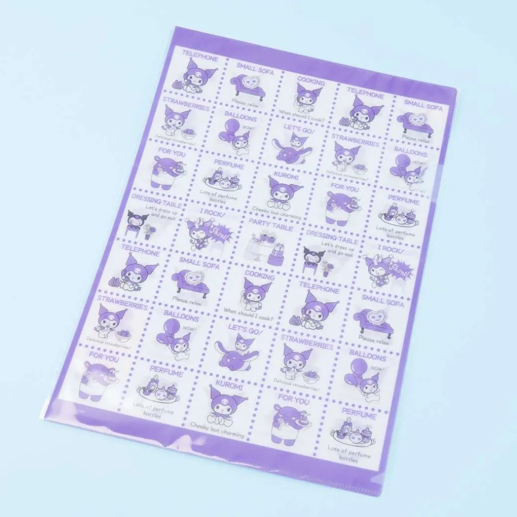 - A cute A4 folder illustrated with Kuromi doing all sorts of things