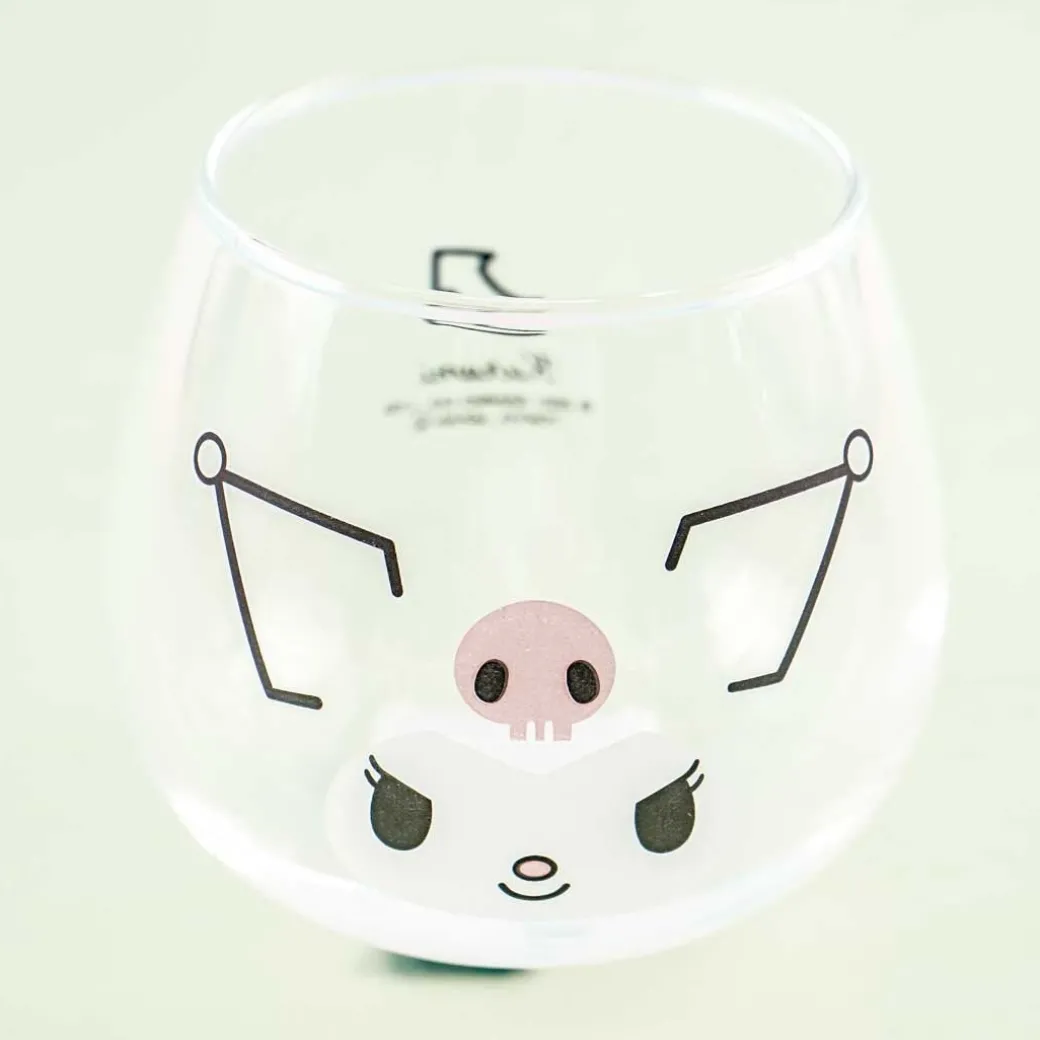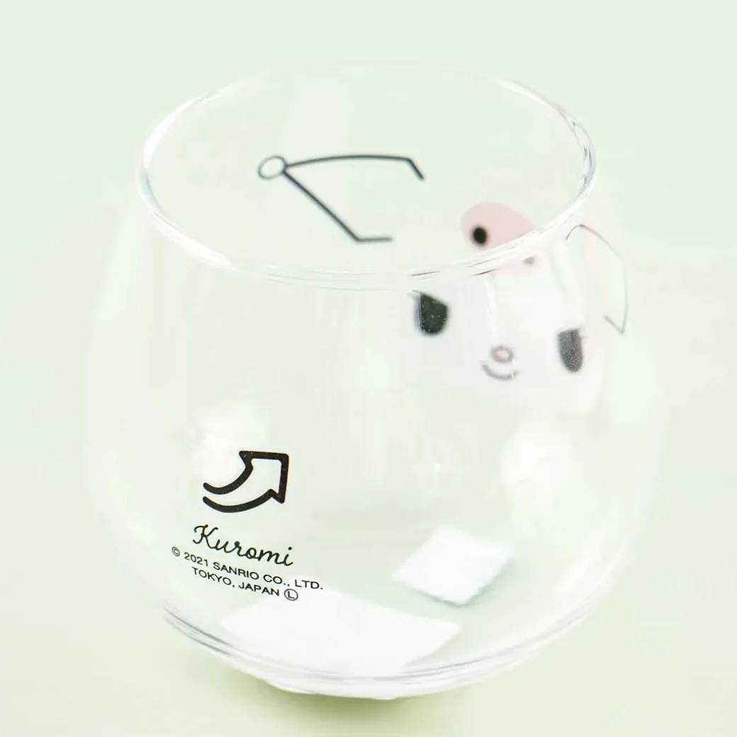 - A cute swaying drinking glass with a print of Kuromi’s face