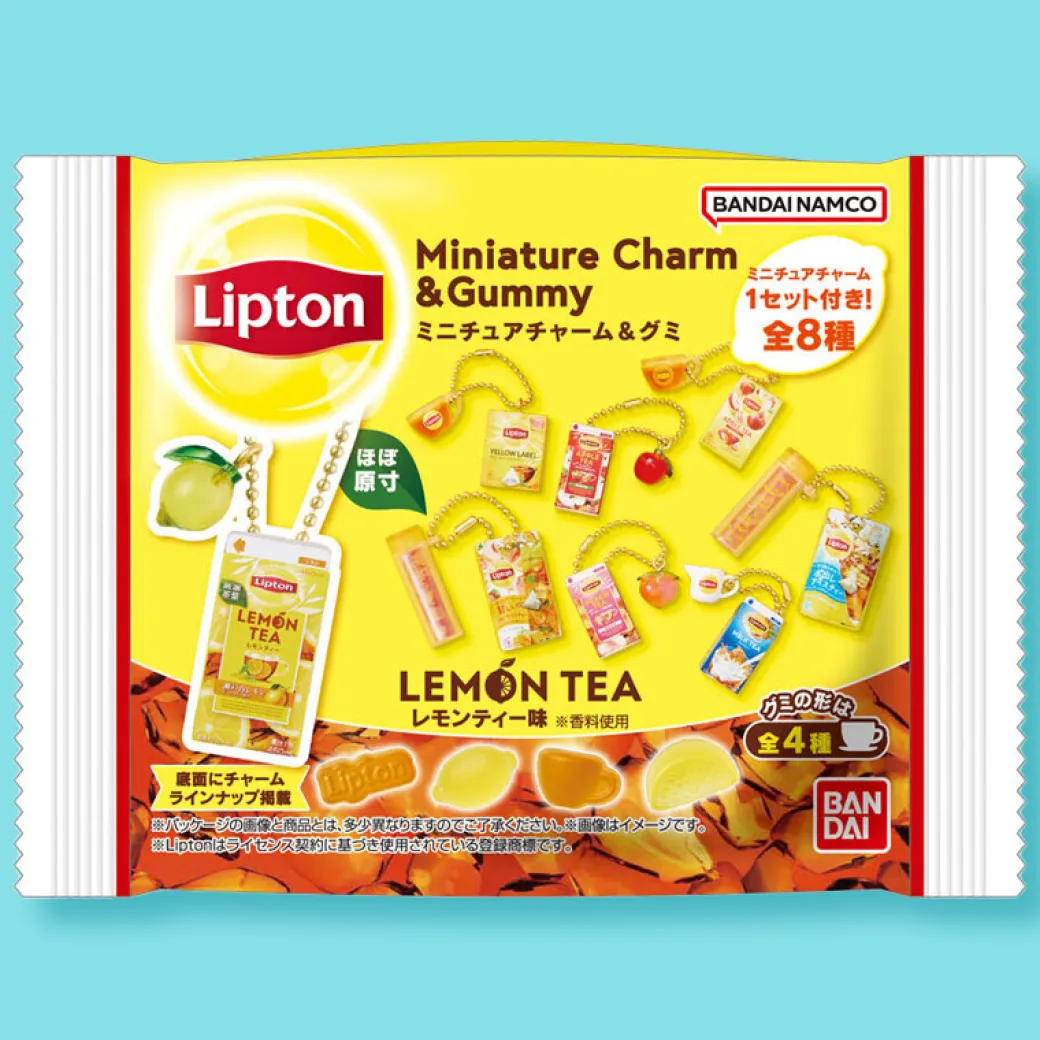 Enjoy lemon tea-flavored gummies and Lipton tea miniature charms in this fun pack! It includes a detailed mini tea carton or tea bag charm paired with a second charm like a fruit, a teacup, or a tumbler. The gummies are shaped like lemons and teacups for extra fun.