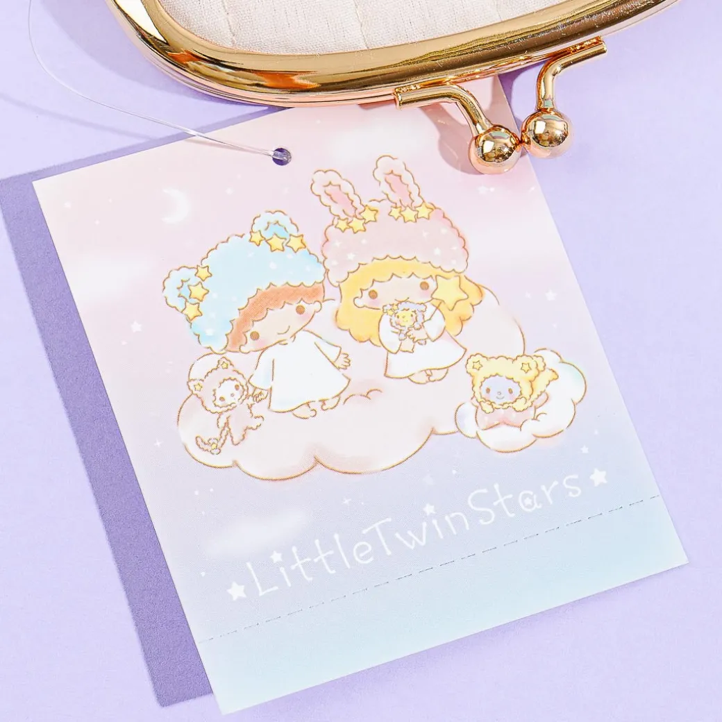 Use this super kawaii coin purse to store your loose change. It showcases prints of the Little Twin Stars wearing animal headpieces! This coin purse has a clasp closure to keep your change safe.