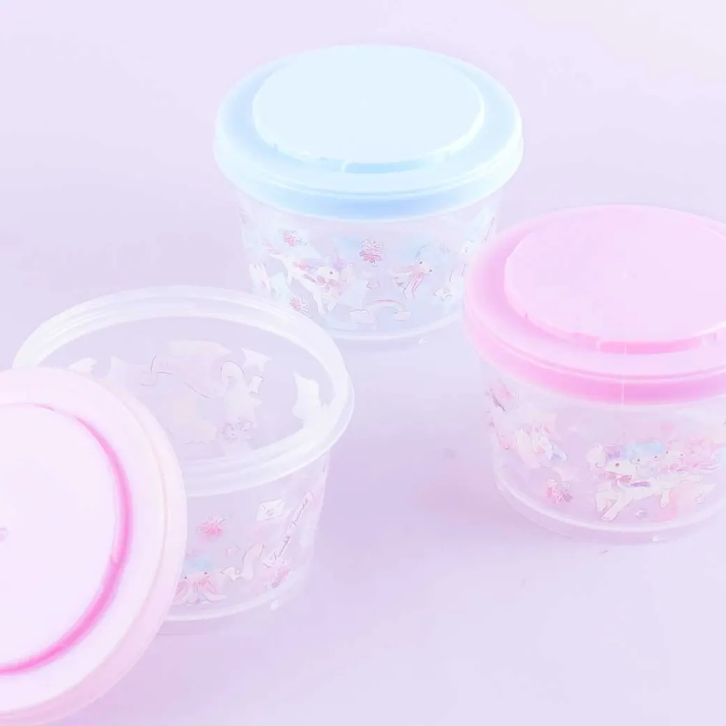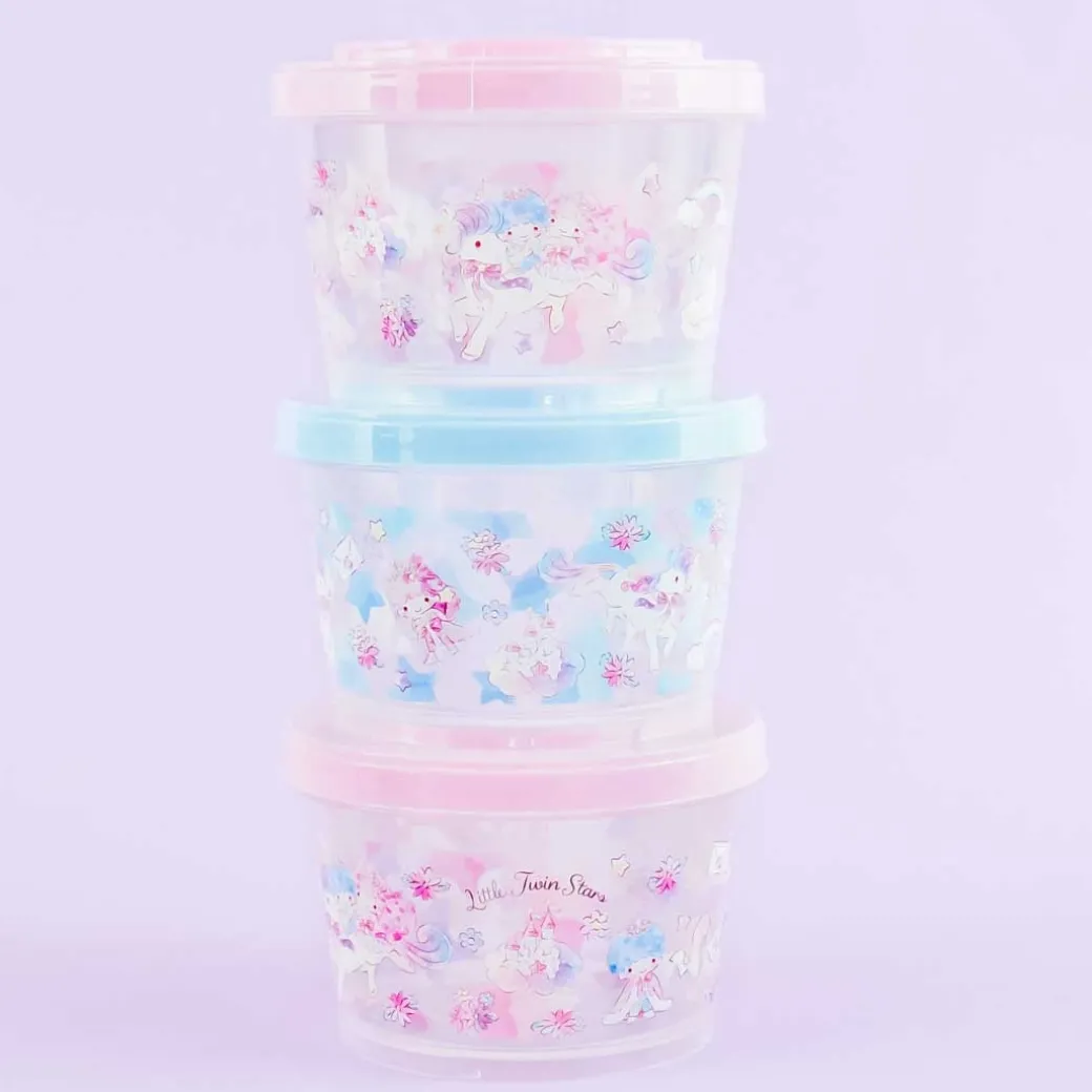 - A stackable round container set featuring the Little Twin Stars and a unicorn
