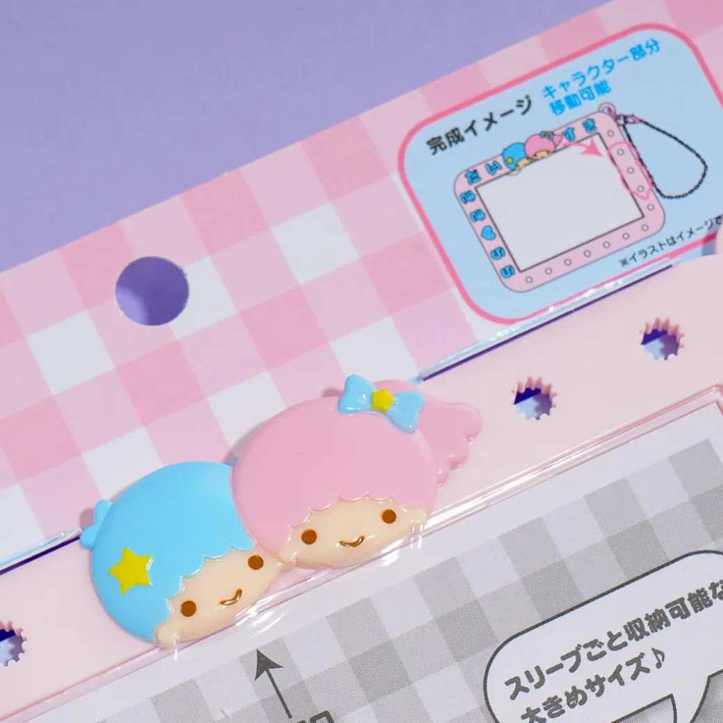 Use this super kawaii photocard holder charm to show off the rarest card you have of your favorite idol! This charm has cute Little Twin Star decors. You can customize it with the help of alphabet decors to make fun phrases. Attach it to your bag with its chain hook.