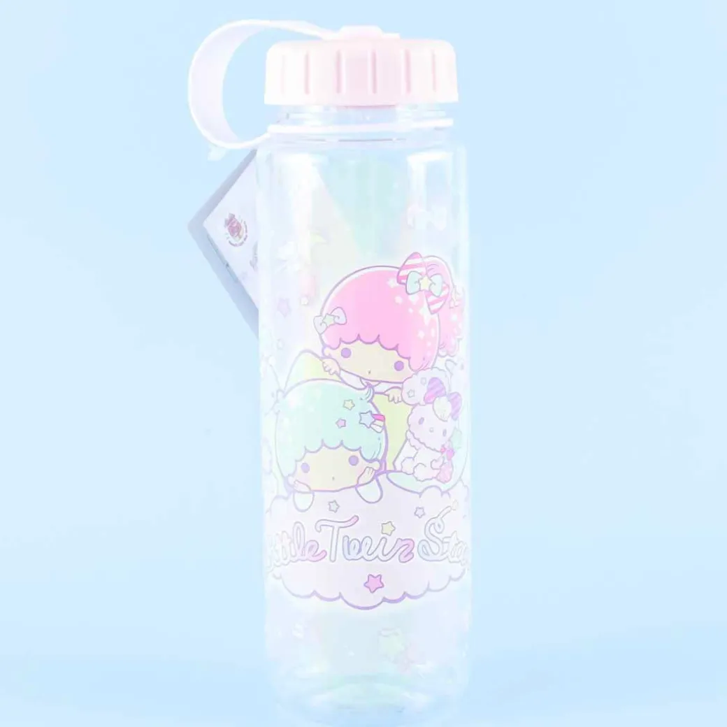 - A kawaii transparent water bottle featuring the Little Twin Stars relaxing on a cloud